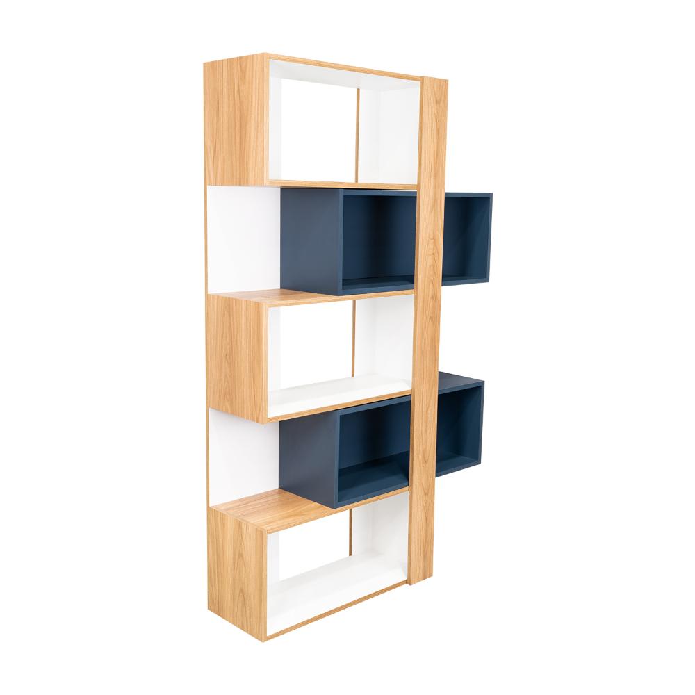 Elaborado en Madera aglomerada MDP, recubierta con láminas melamínicas de excelente calidad, en color Fresno Europeo y Blanco Kronos Azul.