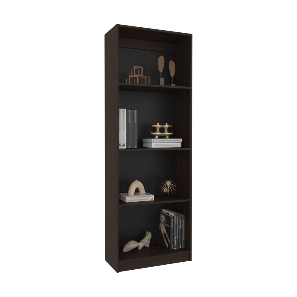 Biblioteca, con cuatro entrepaños para ubicar libros y elementos decorativos.