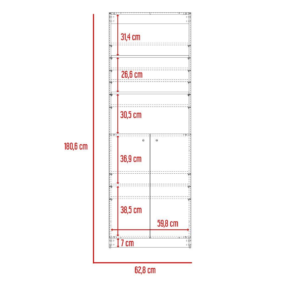 Recomendación: Para Asegurar la estabilidad y firmeza total del mueble, se recomienda estar 100% sujeto a la pared (Incluye Herrajes)