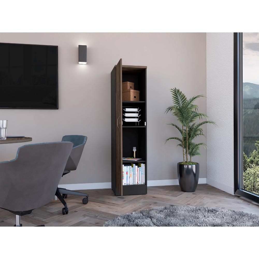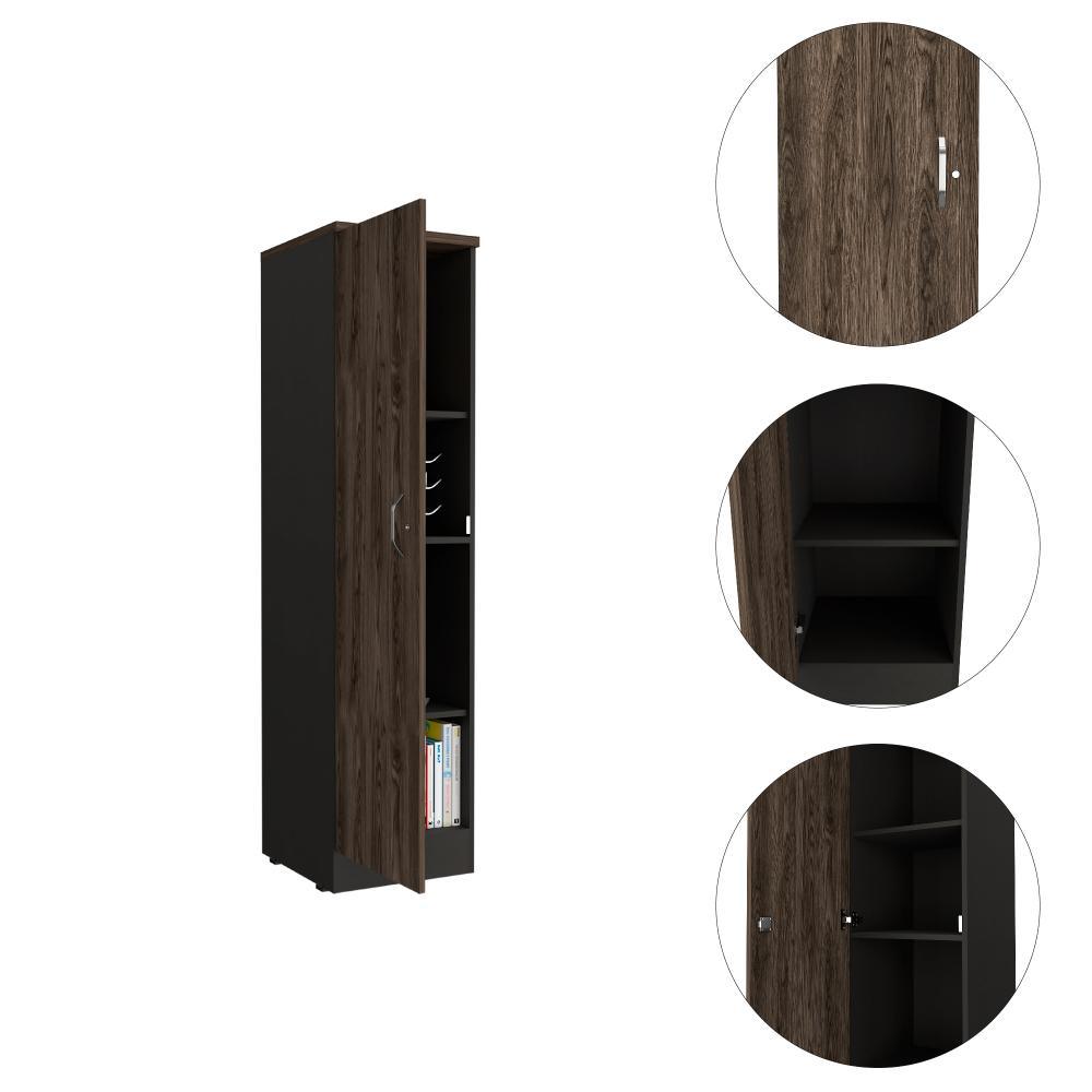 Biblioteca Tray, Chocolate y Wengue, con una puerta - incluye cerradura
