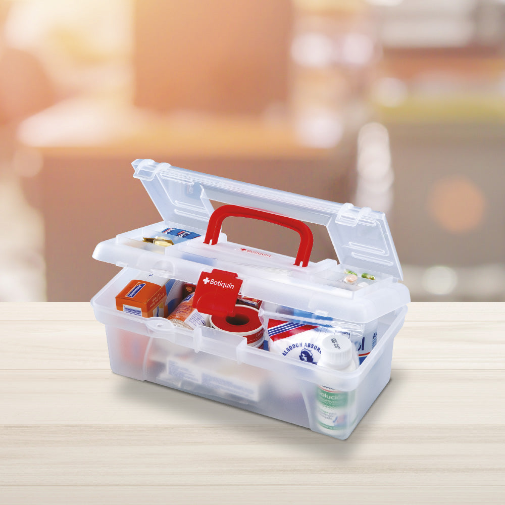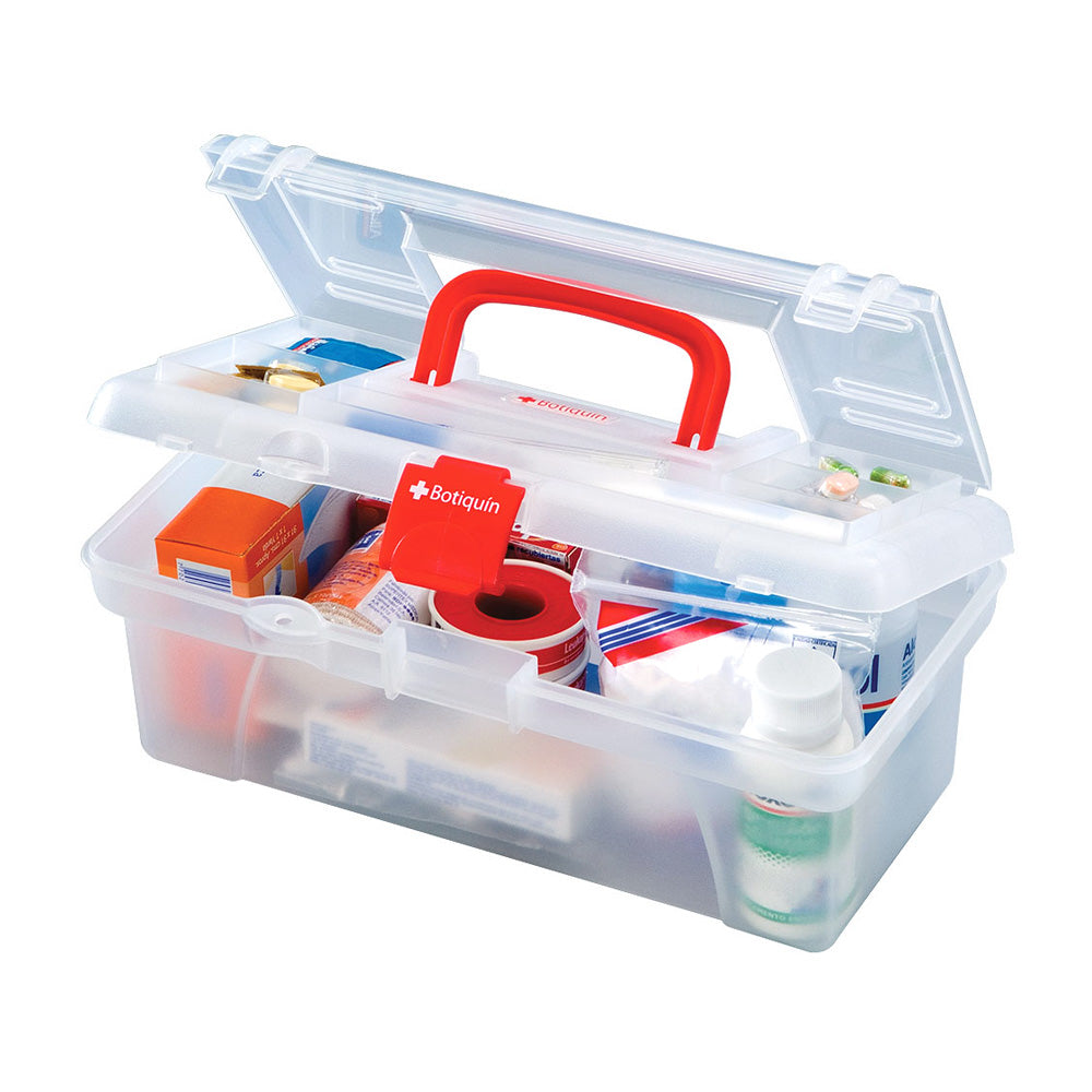 El Botiquín Plástico de 12" es un recipiente compacto y robusto diseñado para almacenar y organizar suministros médicos y de primeros auxilios. Fabricado con plástico resistente, este botiquín es duradero y capaz de soportar el uso diario en diversos entornos como el hogar, oficina, carro, o durante actividades al aire libre. Su diseño incluye compartimentos internos para mantener los artículos ordenados y de fácil acceso. Además, cuenta con un cierre seguro que evita aperturas accidentales y mantiene su contenido protegido.