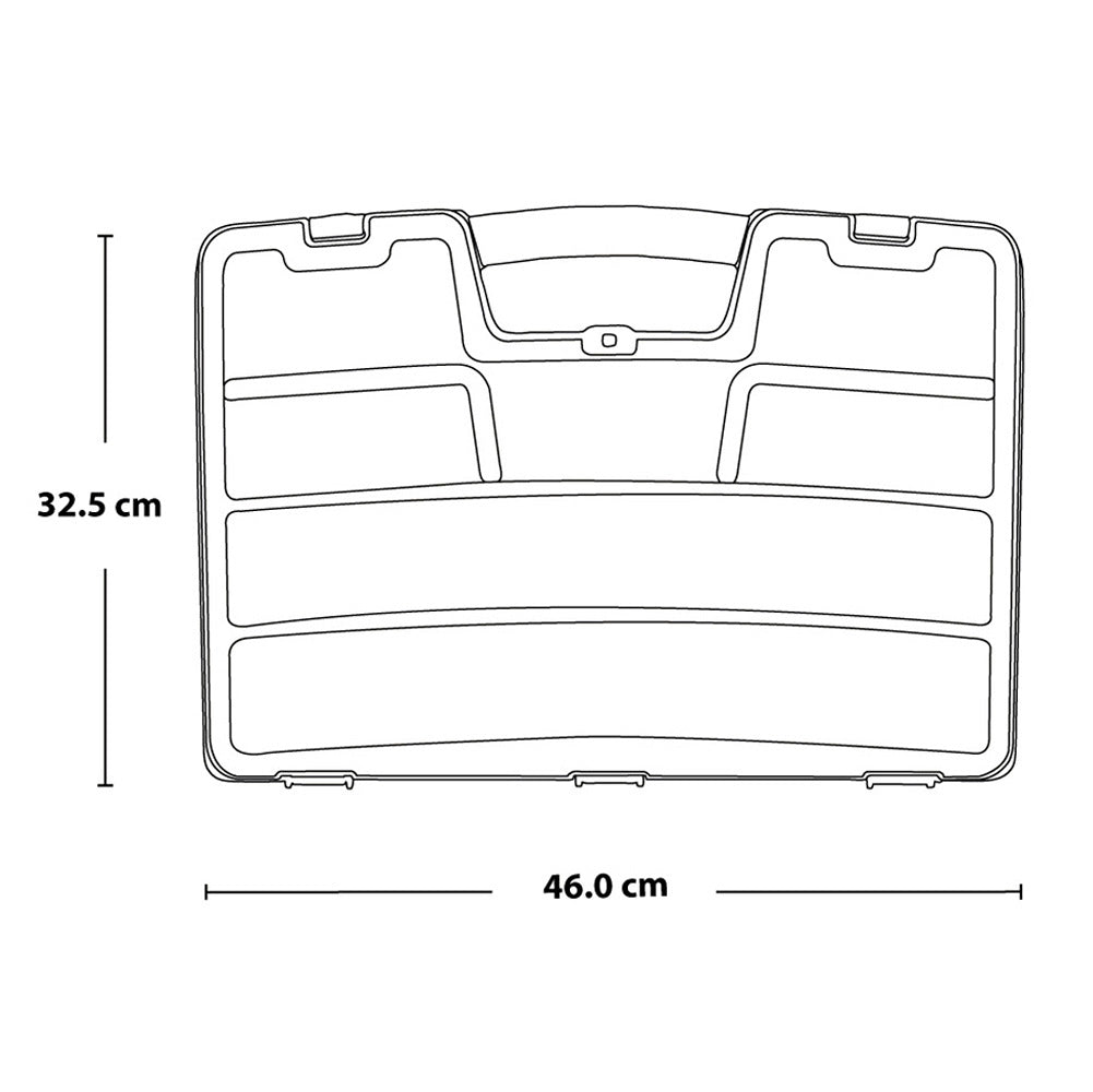 Gran Espacio de Almacenamiento: Con sus 460 milímetros de tamaño, esta caja ofrece espacio suficiente para guardar una amplia variedad de herramientas, piezas y accesorios de manera ordenada.
