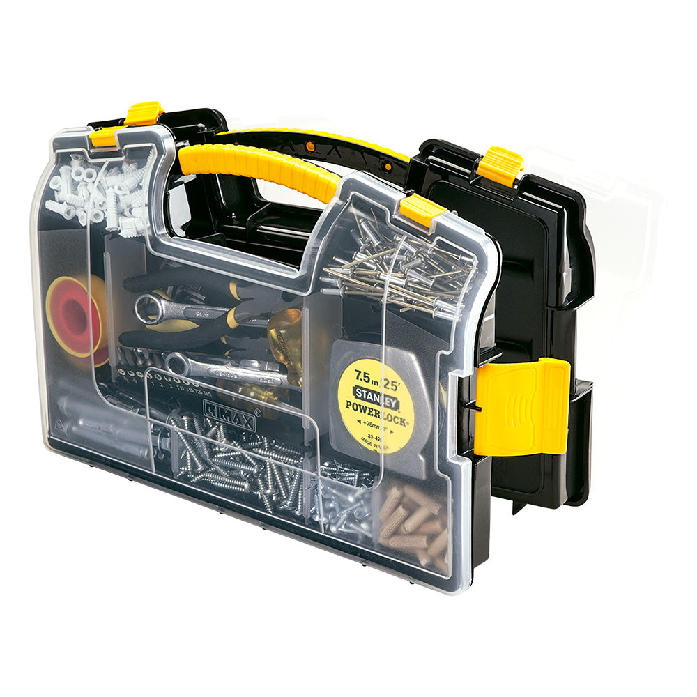 Doble Compartimento: Con dos secciones separadas, esta caja te permite organizar tus herramientas y accesorios de manera ordenada, facilitando la visualización y selección de los elementos.