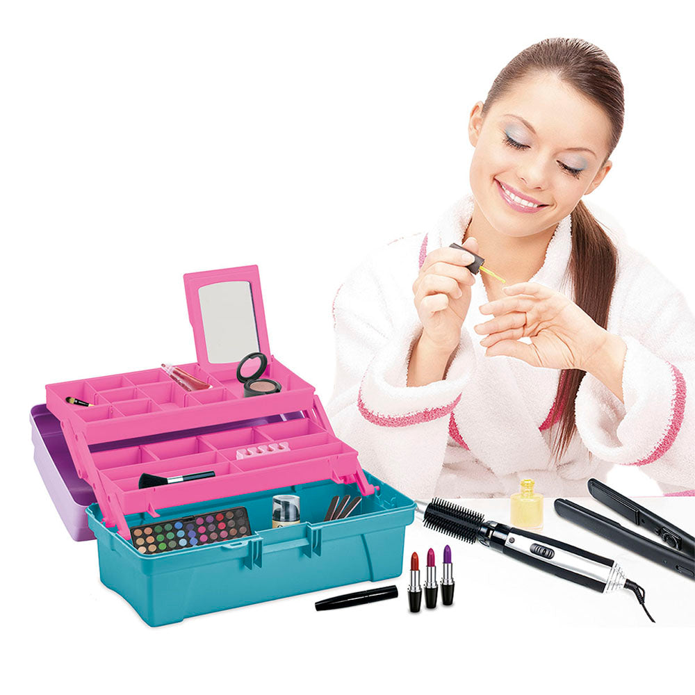 Portabilidad y Estilo: Su diseño portátil con una manija facilita el transporte de tus artículos de belleza, y los colores divertidos y atractivos añaden un toque de estilo a tu rutina diaria de cuidado personal.