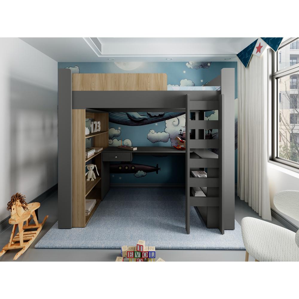 Camarote Multifuncional Coryn, Plata Oscuro y Fresno Europeo, con escaleras fijas y cajón para guardar implementos