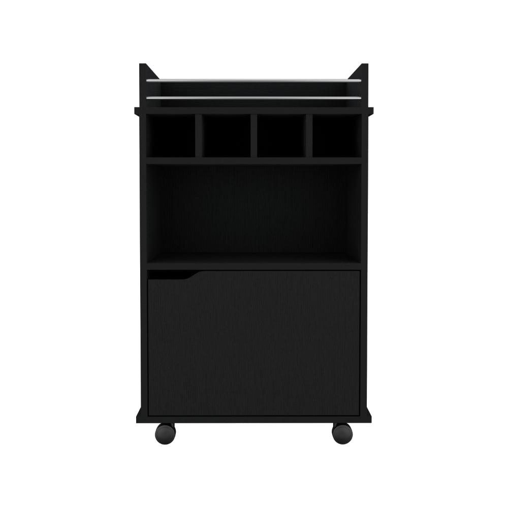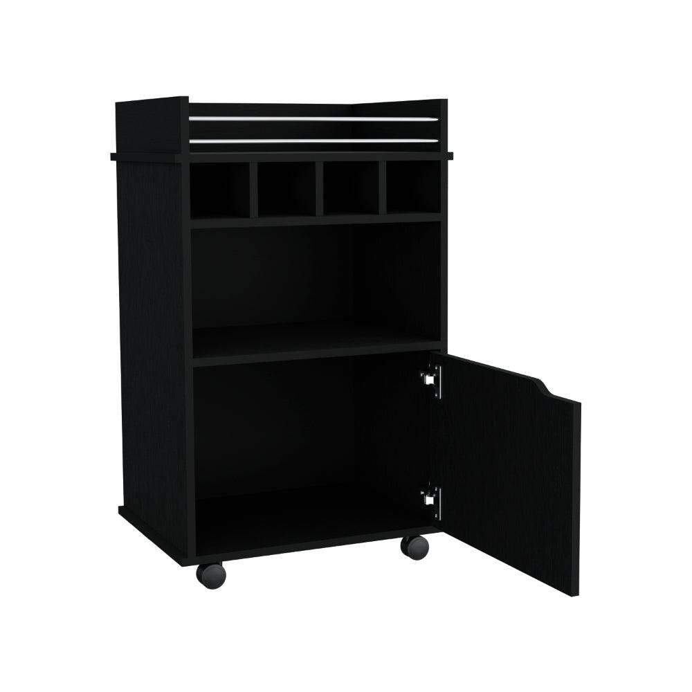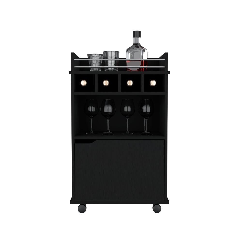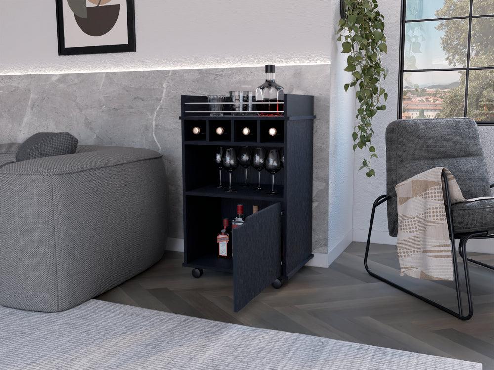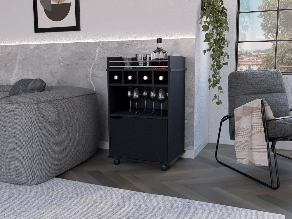Bar, con espacio para organizar licores y vasos, rodachinas para fácil desplazamiento, fácil armado e instalación.