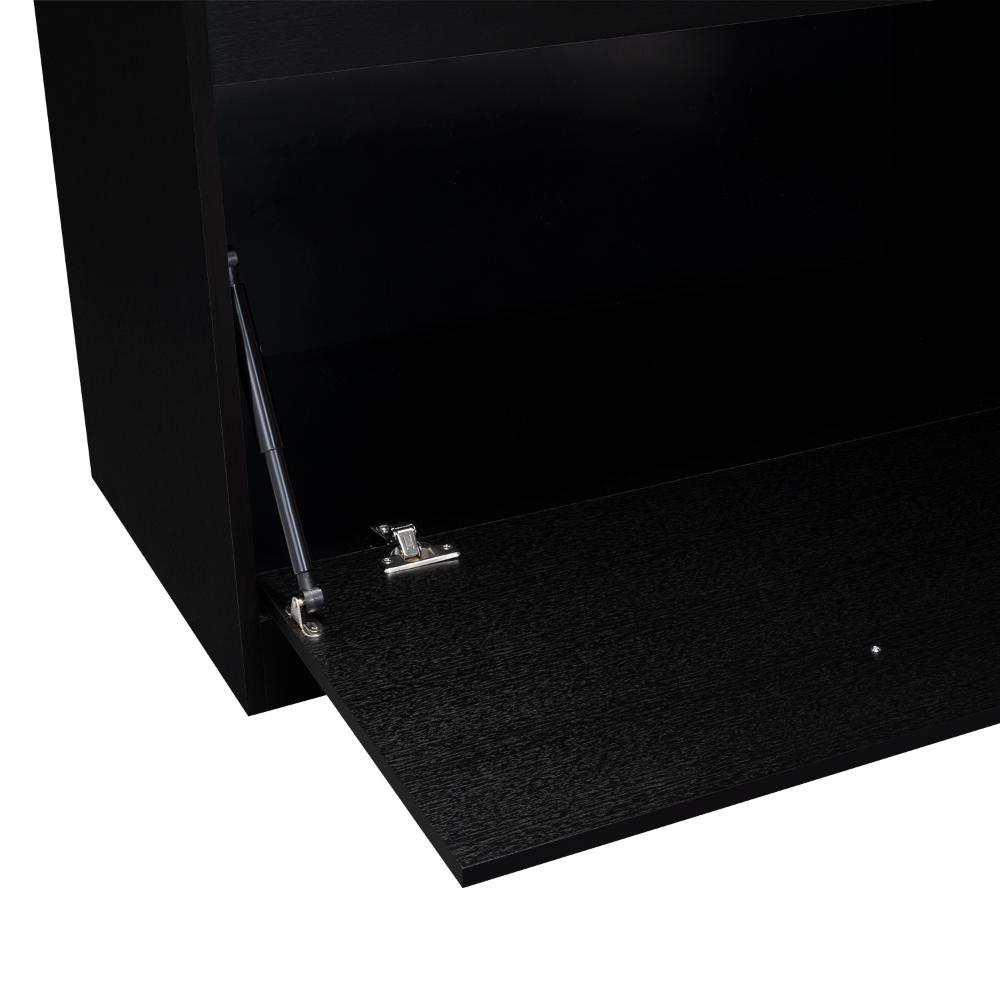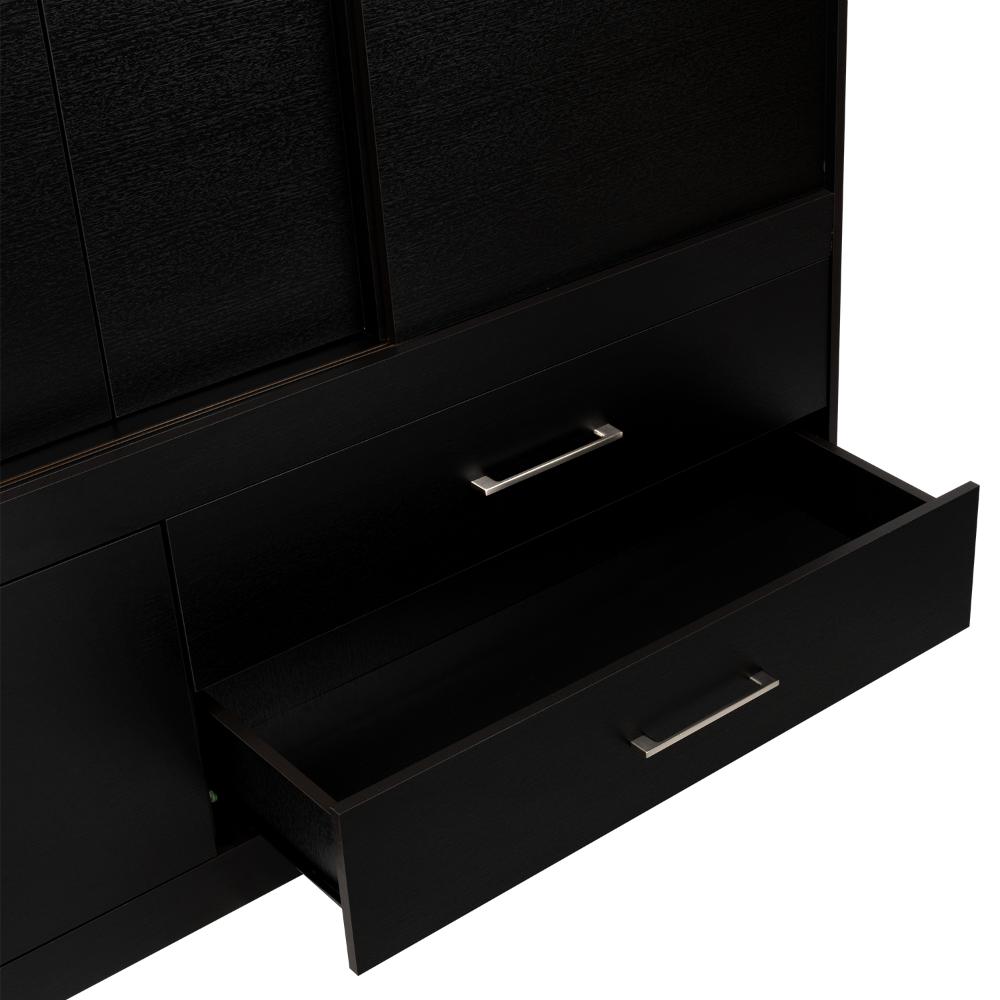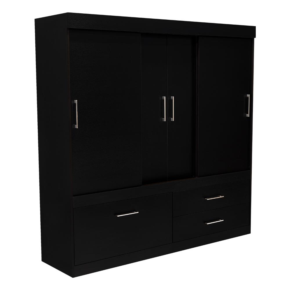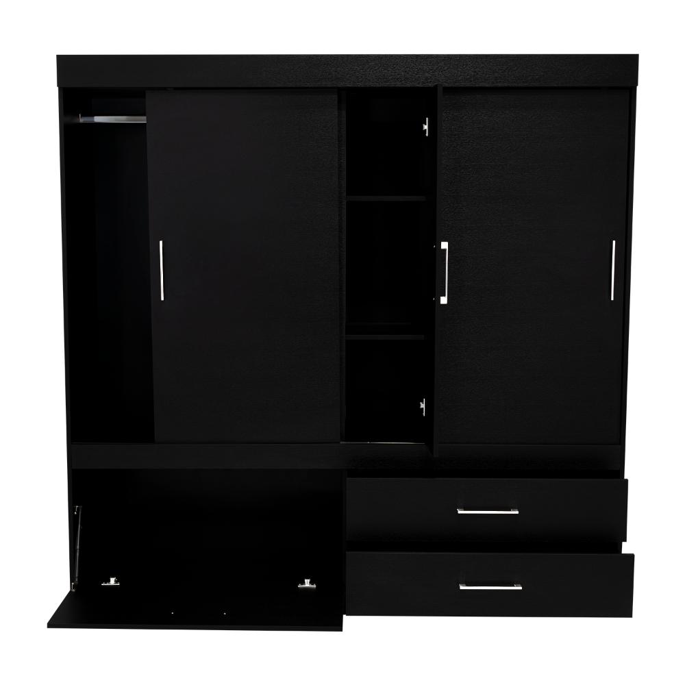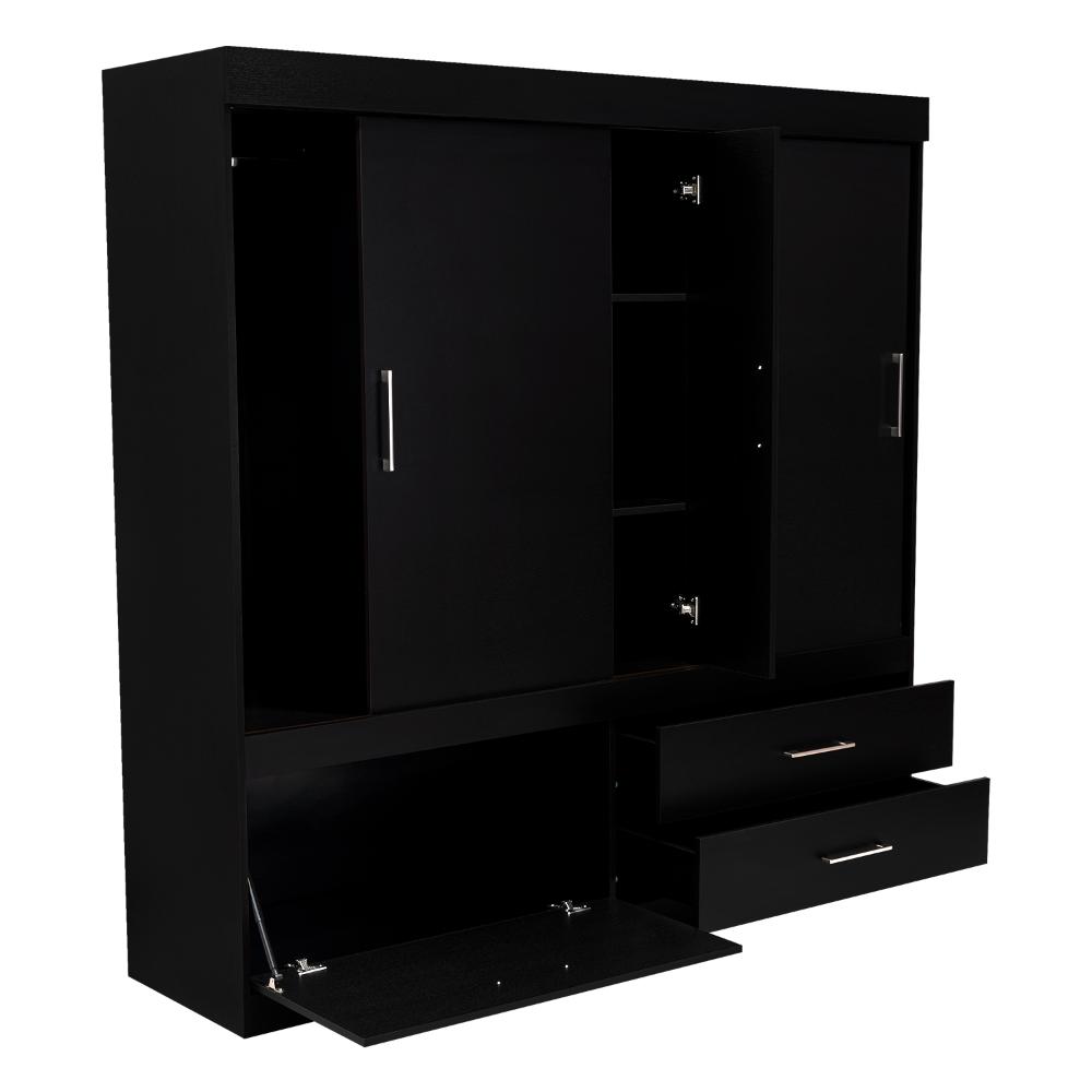 Elaborado en Madera aglomerada MDP, recubierta con láminas melamínicas de excelente calidad, en color Wengue y Negro.