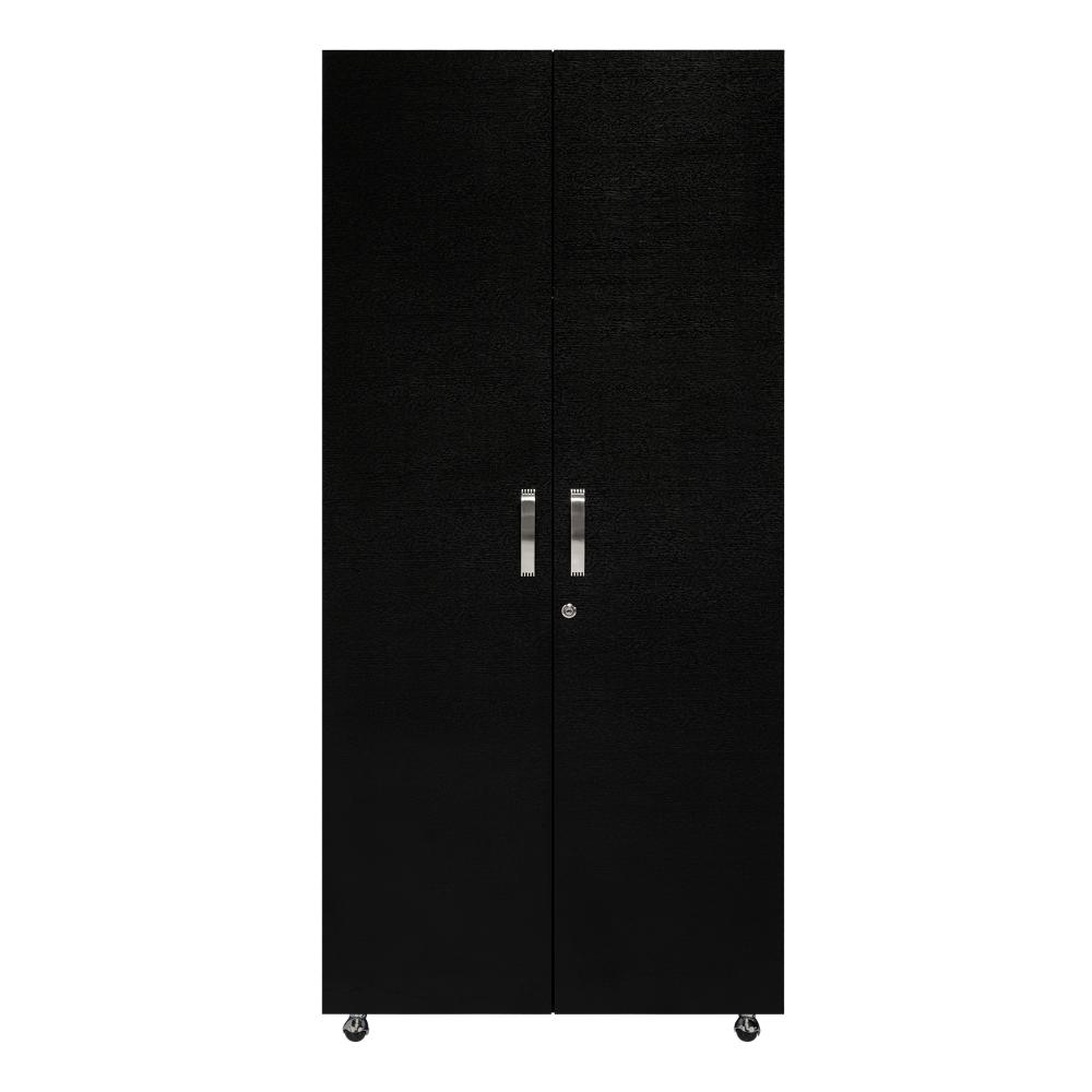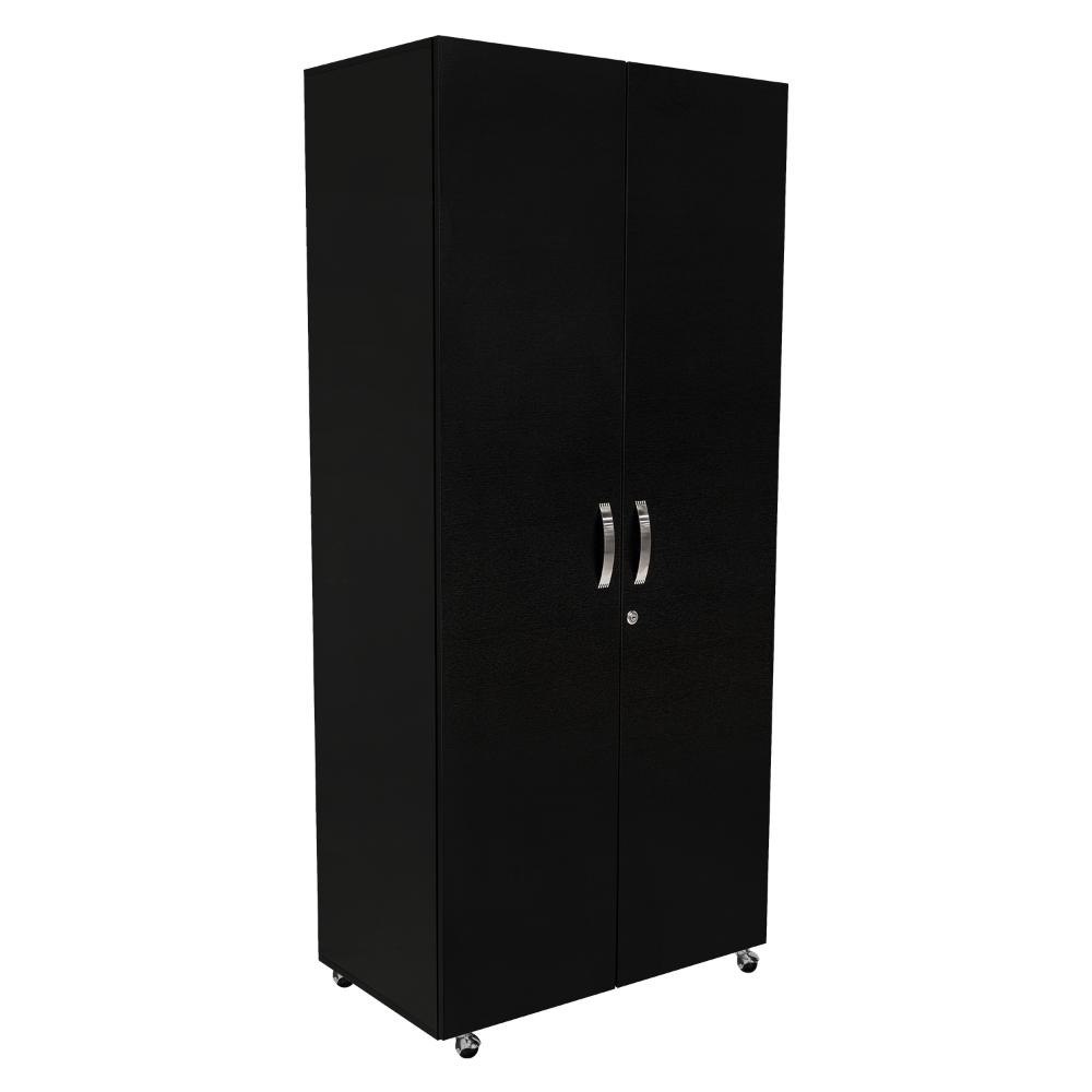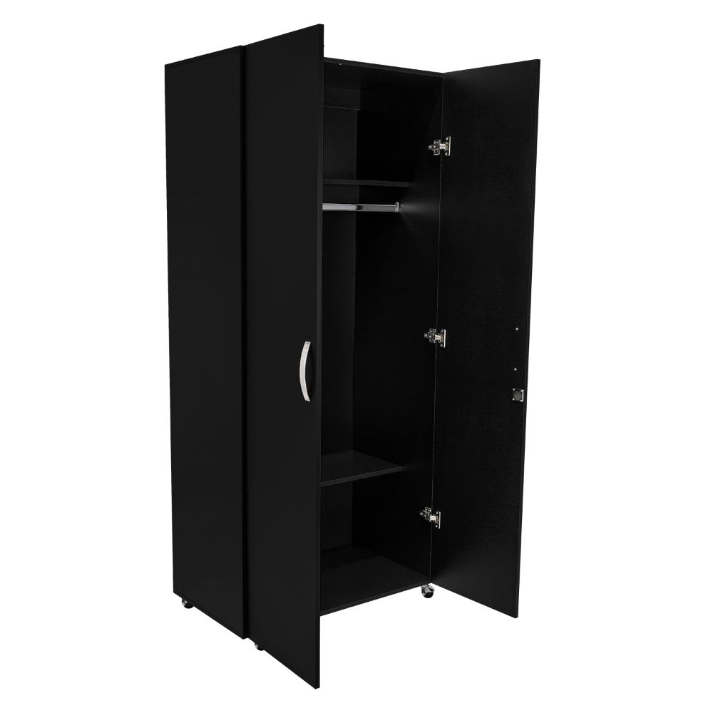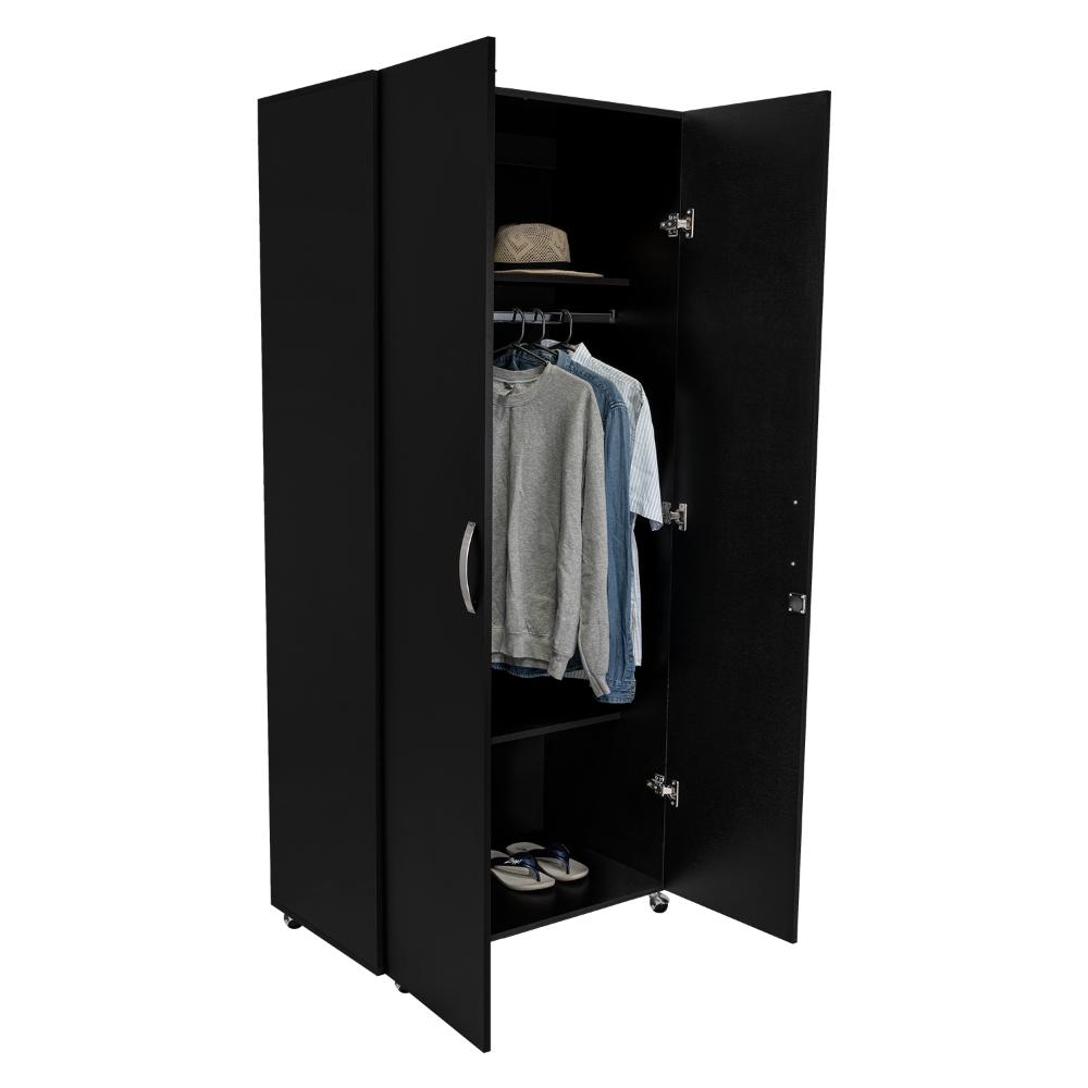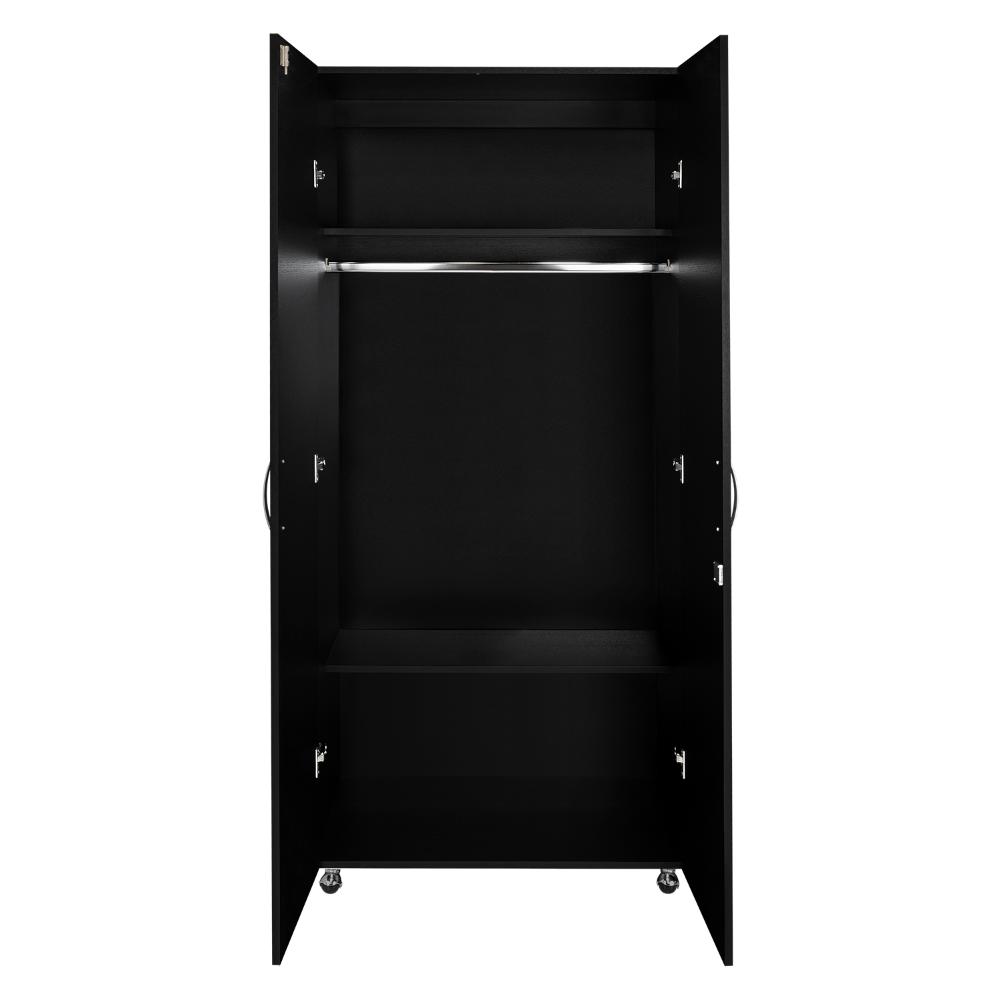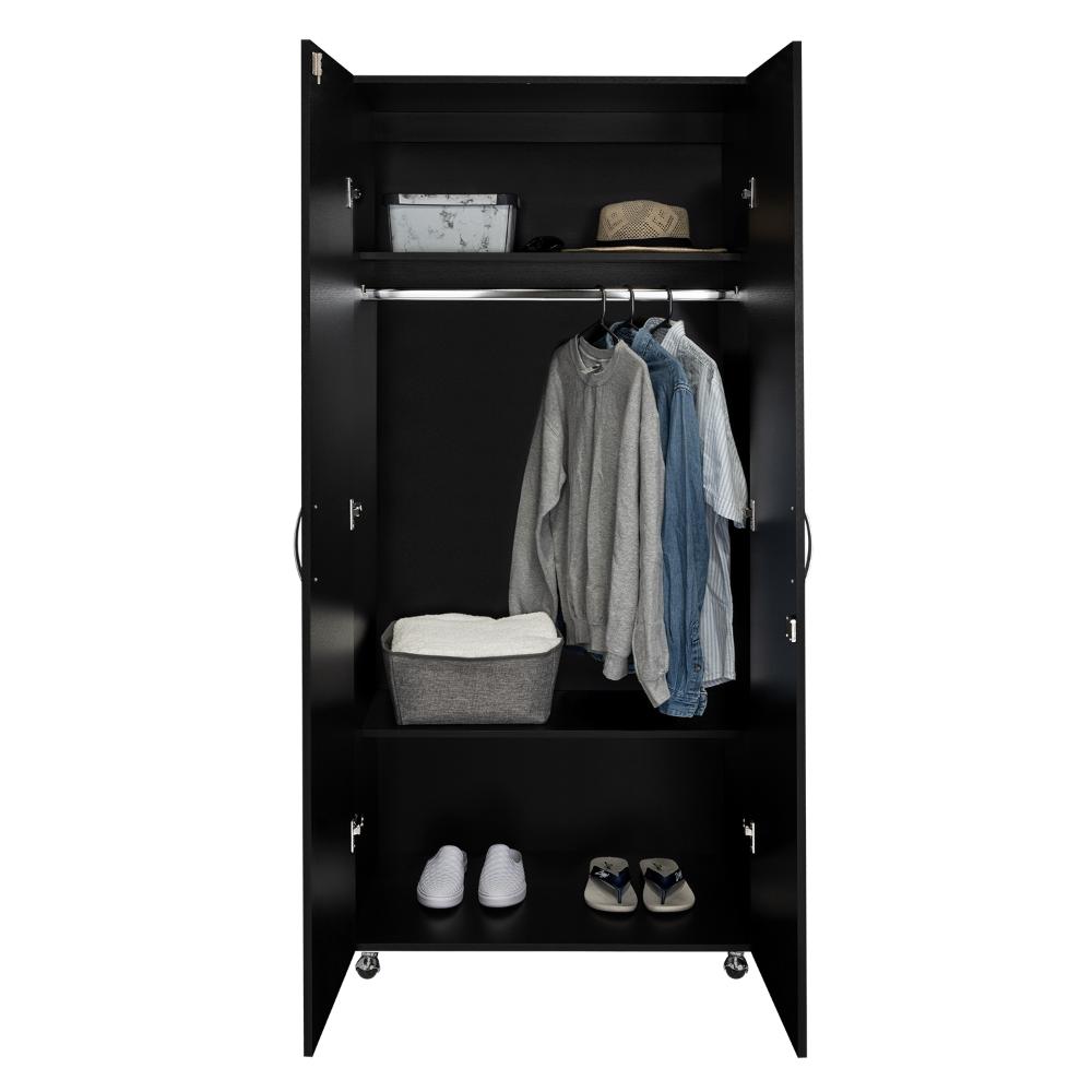 Closet, con dos puertas abatibles, manijas metálicas, un tubo para colgar prendas, amplios espacios para organizar ropa, zapatos, accesorios u otros.