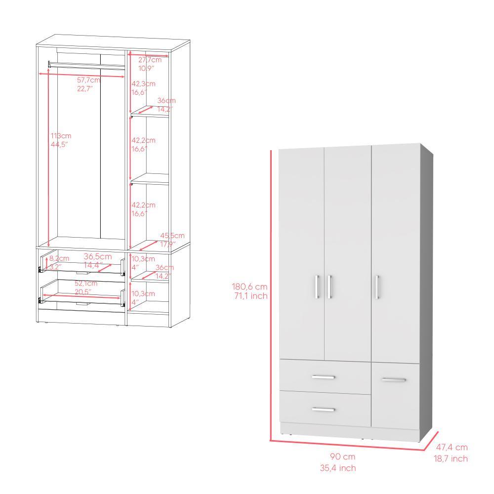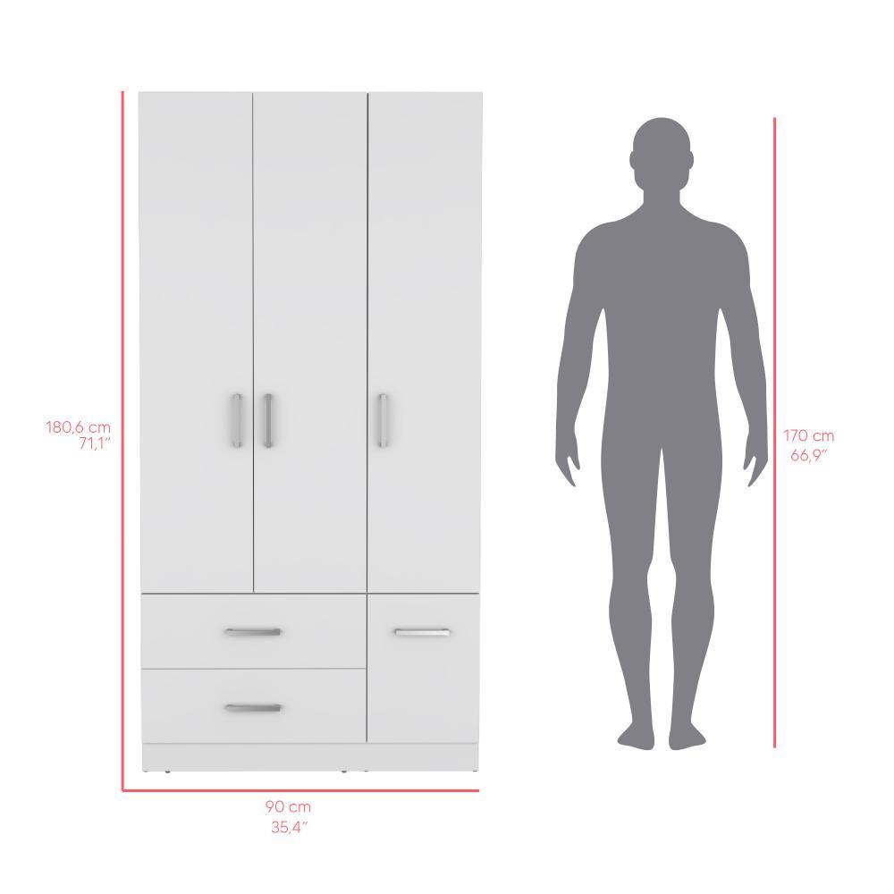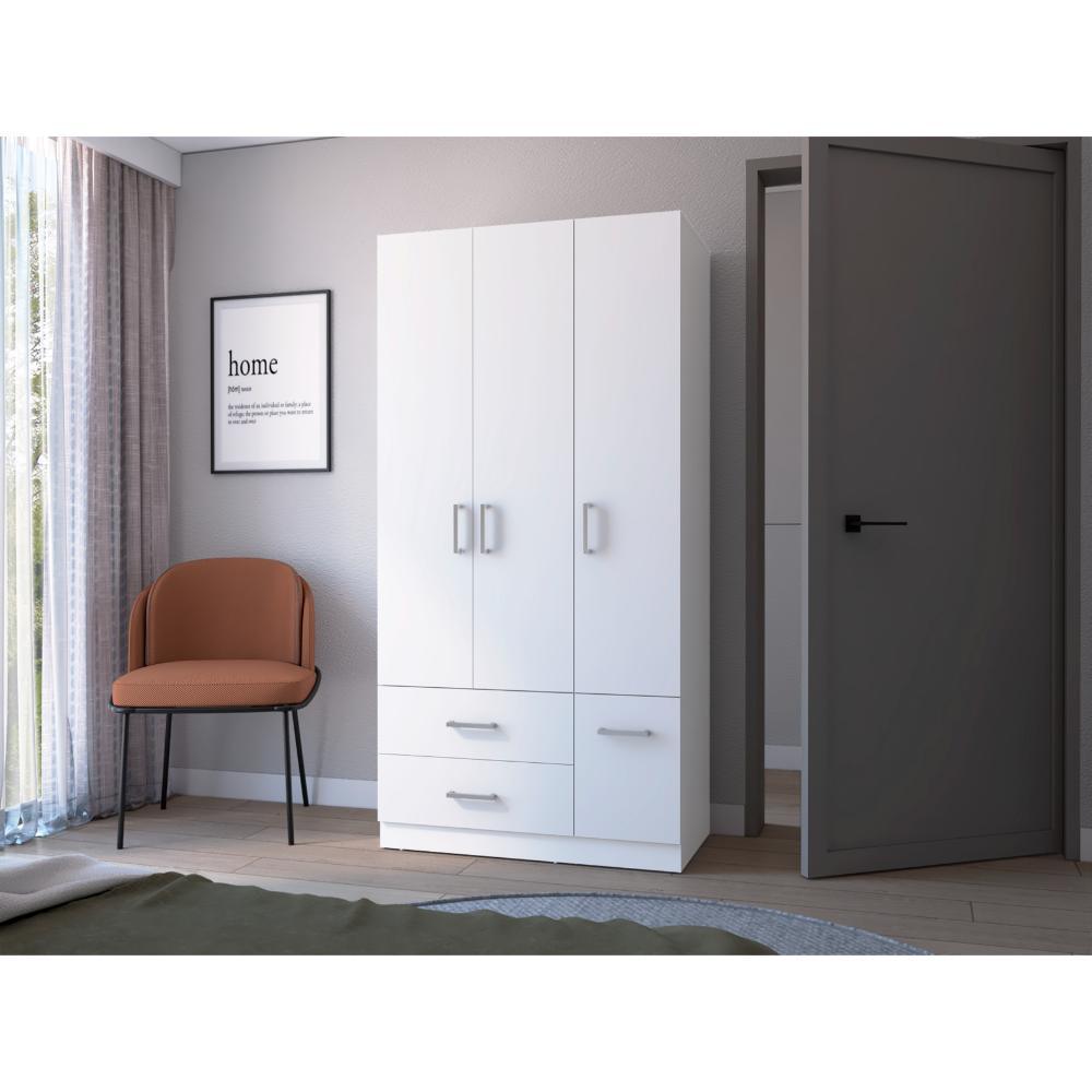 Closet, con un tubo para colgar ropa, cuatro puertas y dos cajones, debe ser anclado a la pared, incluye los elementos necesarios