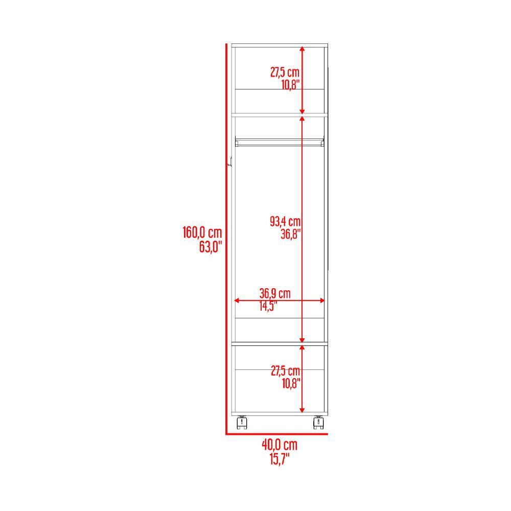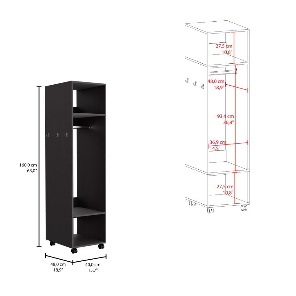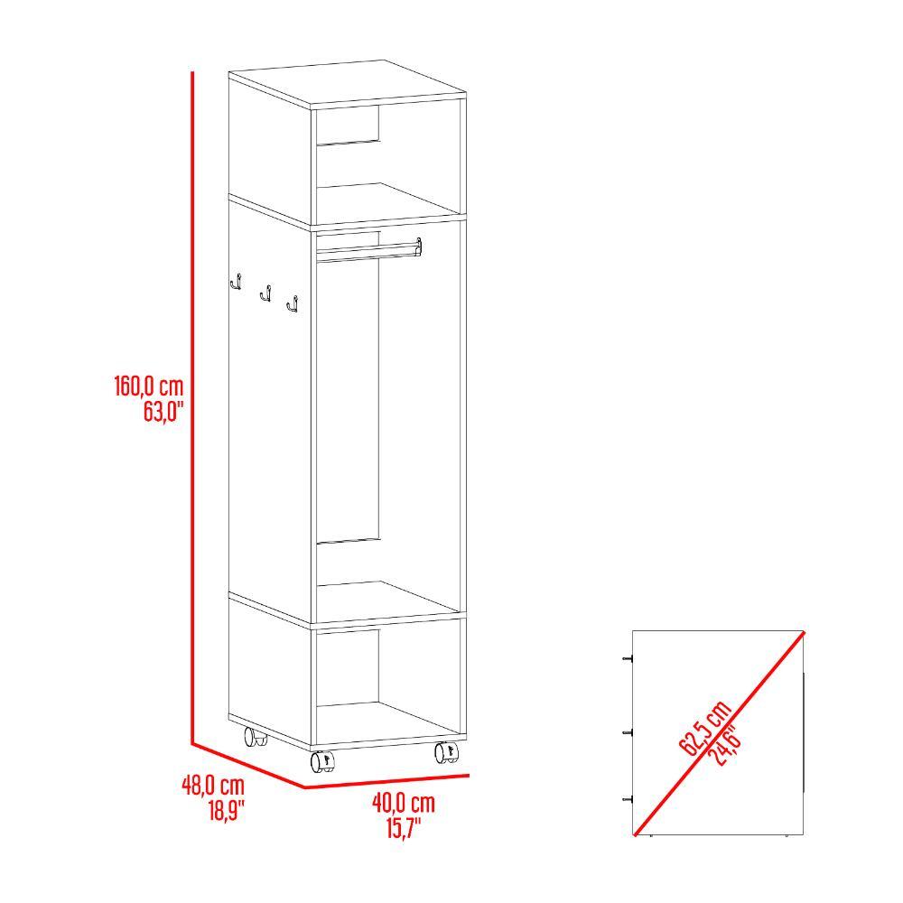 Closet, con tres espacios para guardar ropa, rodachinas con y sin freno para desplazamiento, un espejo en el lateral.