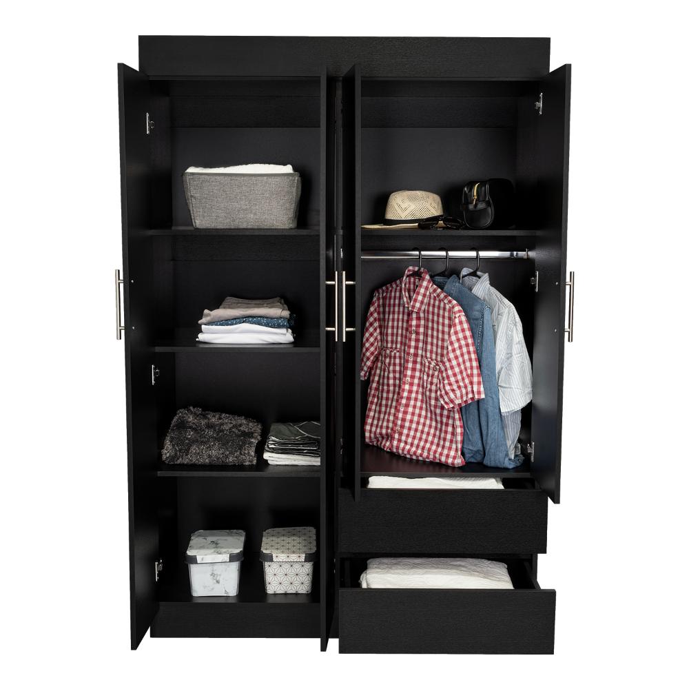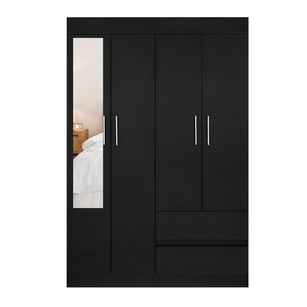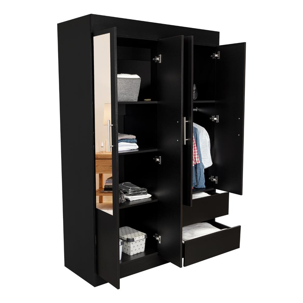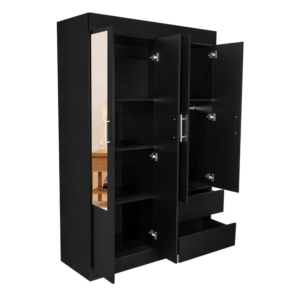 Closet, con espejo, 1 tubo cromado, 2 cajones organizadores, 4 puertas, y, 5 entrepaños.