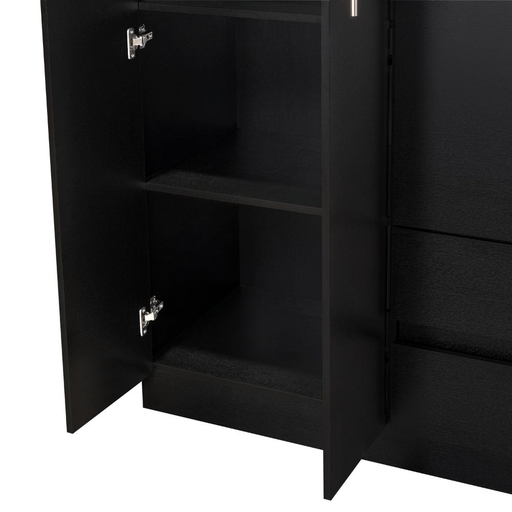 Elaborado en Madera aglomerada MDP, recubierta con láminas melamínicas de excelente calidad, en color Wengue.