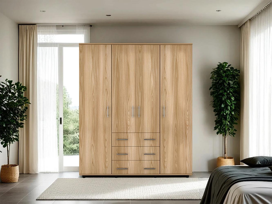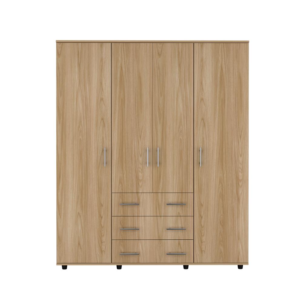 Closet, con diseño funcional; 4 puertas abatibles, 3 cajones organizadores; amplios espacios para guardar ropa, accesorios y zapatos; y 4 tubos cromados para colgar ropa.