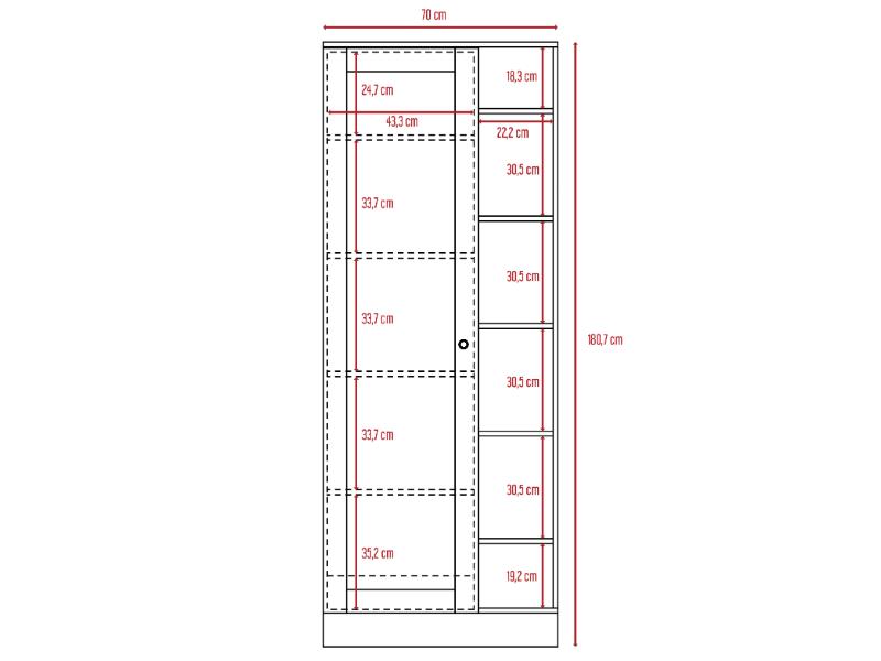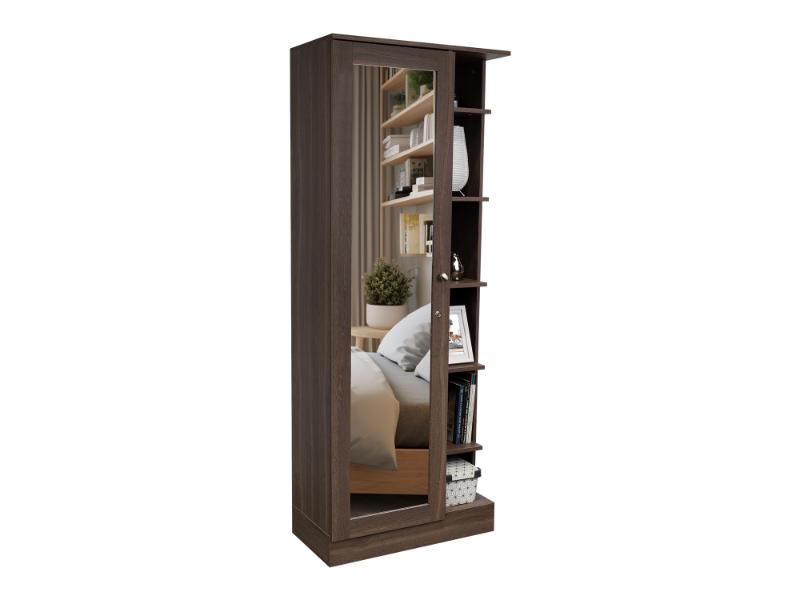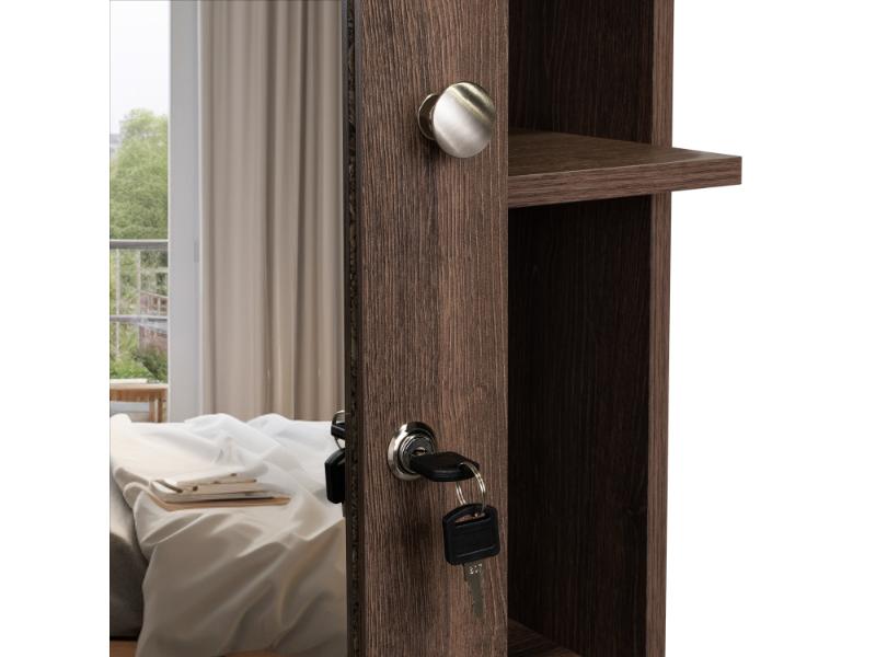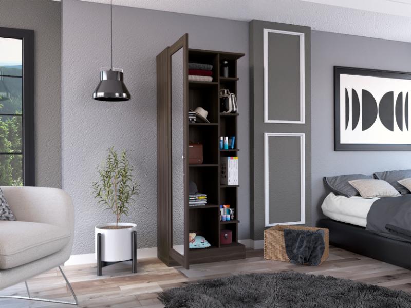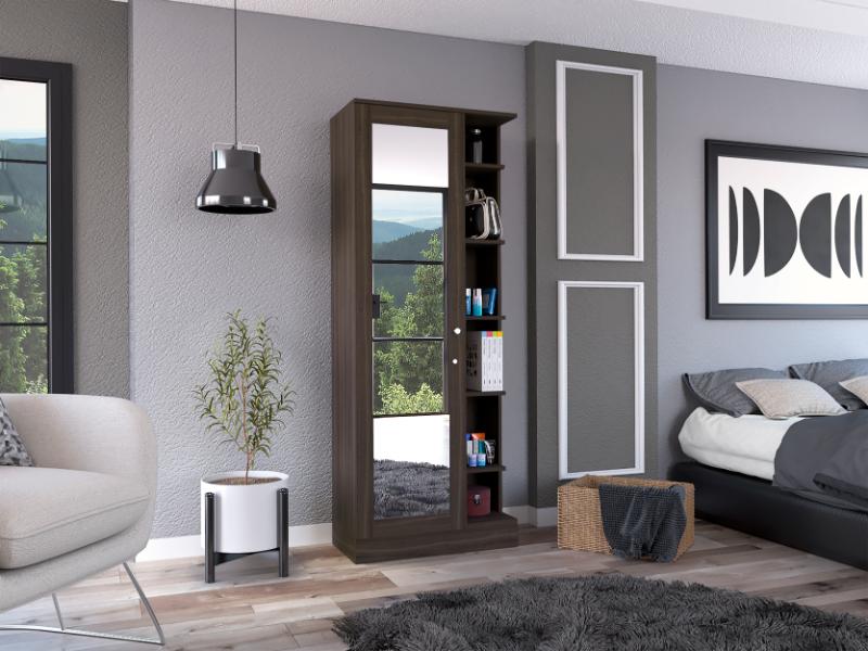 Closet Lara con Espejo, Chocolate, con Siete Entrepaños y Gran Capacidad de Almacenamiento
