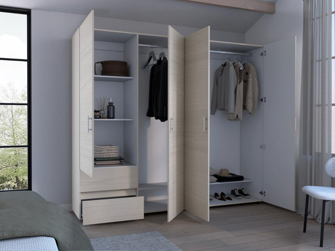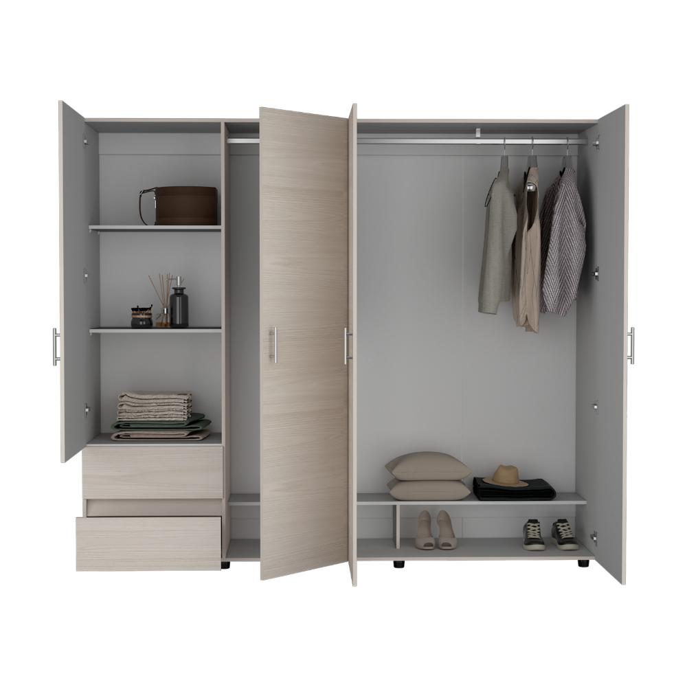 Closet Light 230, Niebla y Blanco Duqueza, con dos cajones y cuatro puertas