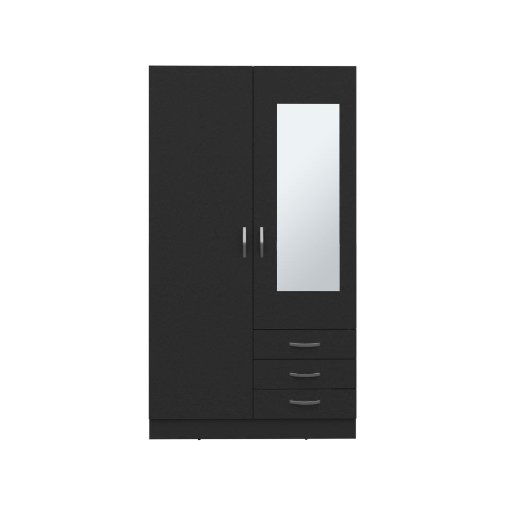 Closet, con 2 puertas abatibles, 3 cajones, cuenta con diversos espacio para ropa y accesorios, incluye espejo con medidas de 90x30 cm, y es de facil instalación.