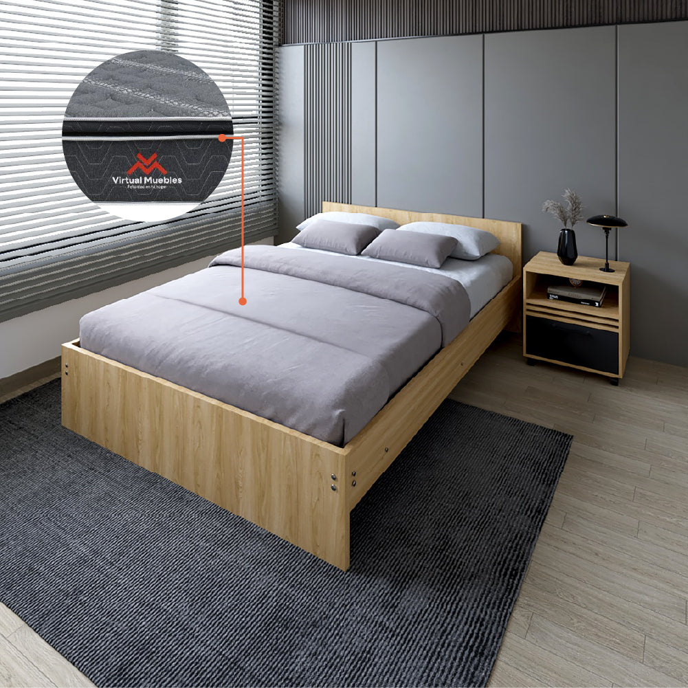 Combo para Habitación Beker, Incluye Cama Doble - Colchón y Mesa de Noche