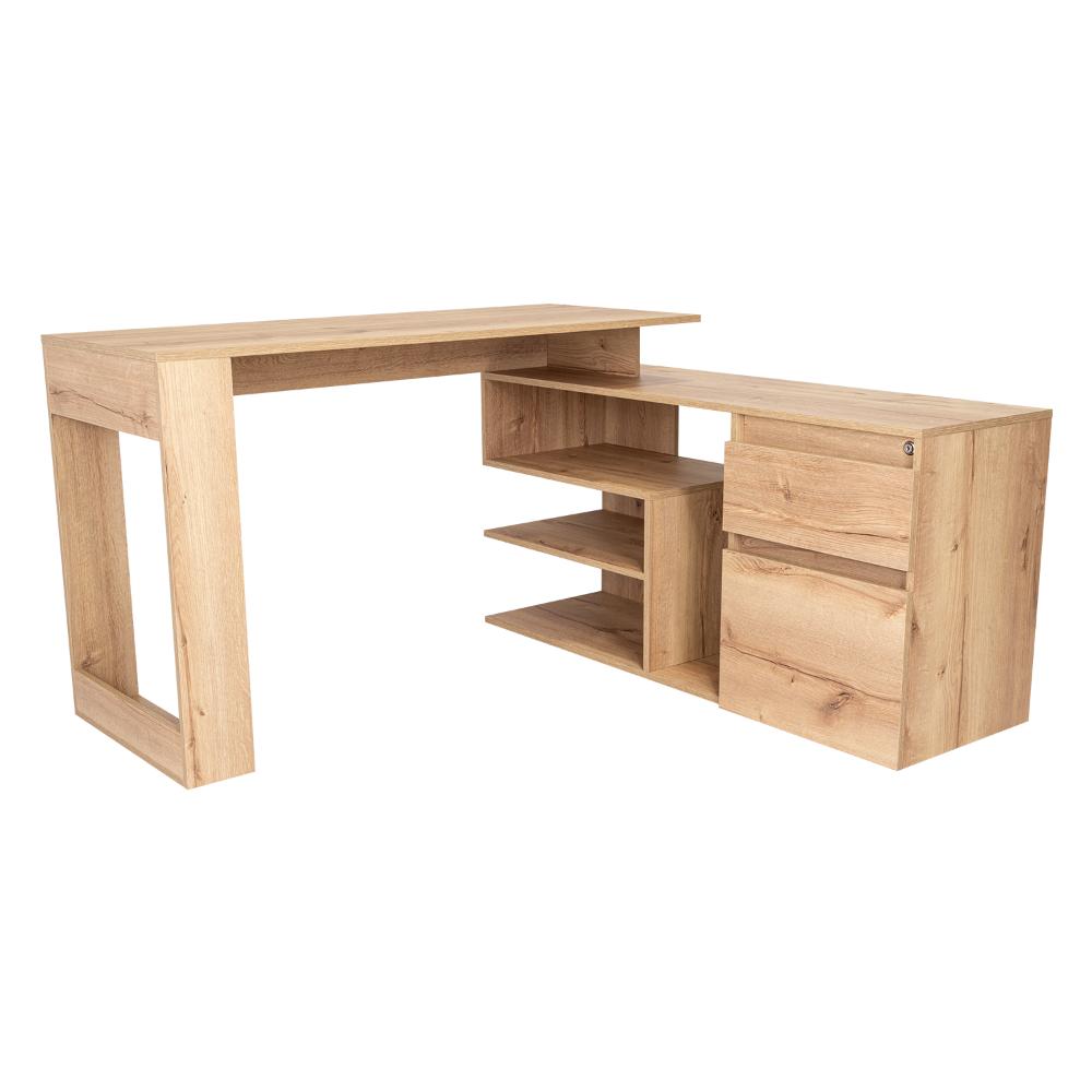 Escritorio En L Alteza, Café Claro, con Dos Cajones Organizadores