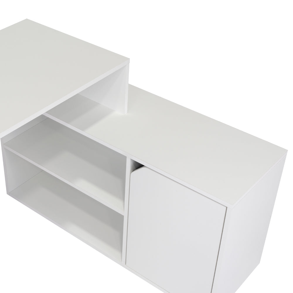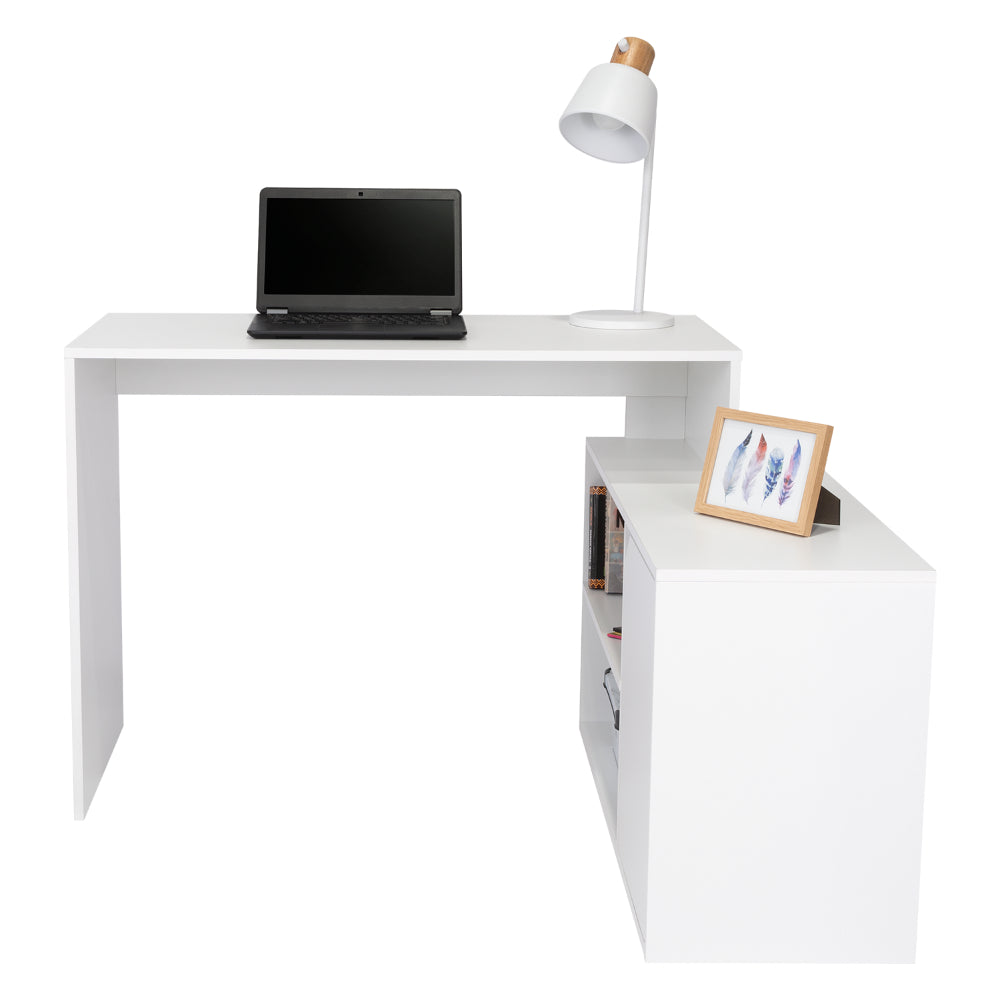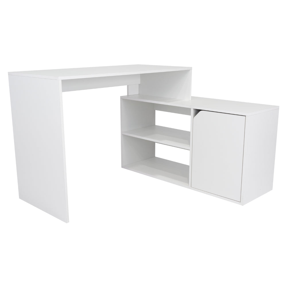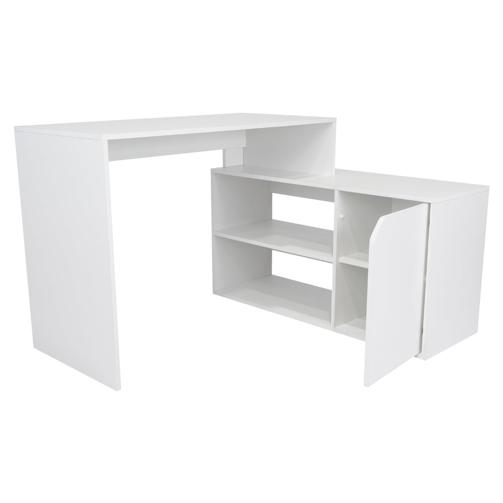 Escritorio En L Wuhan, Blanco, con Múltiples Entrepaños Para Ubicar Objetos y Una Puerta Abatible Cop