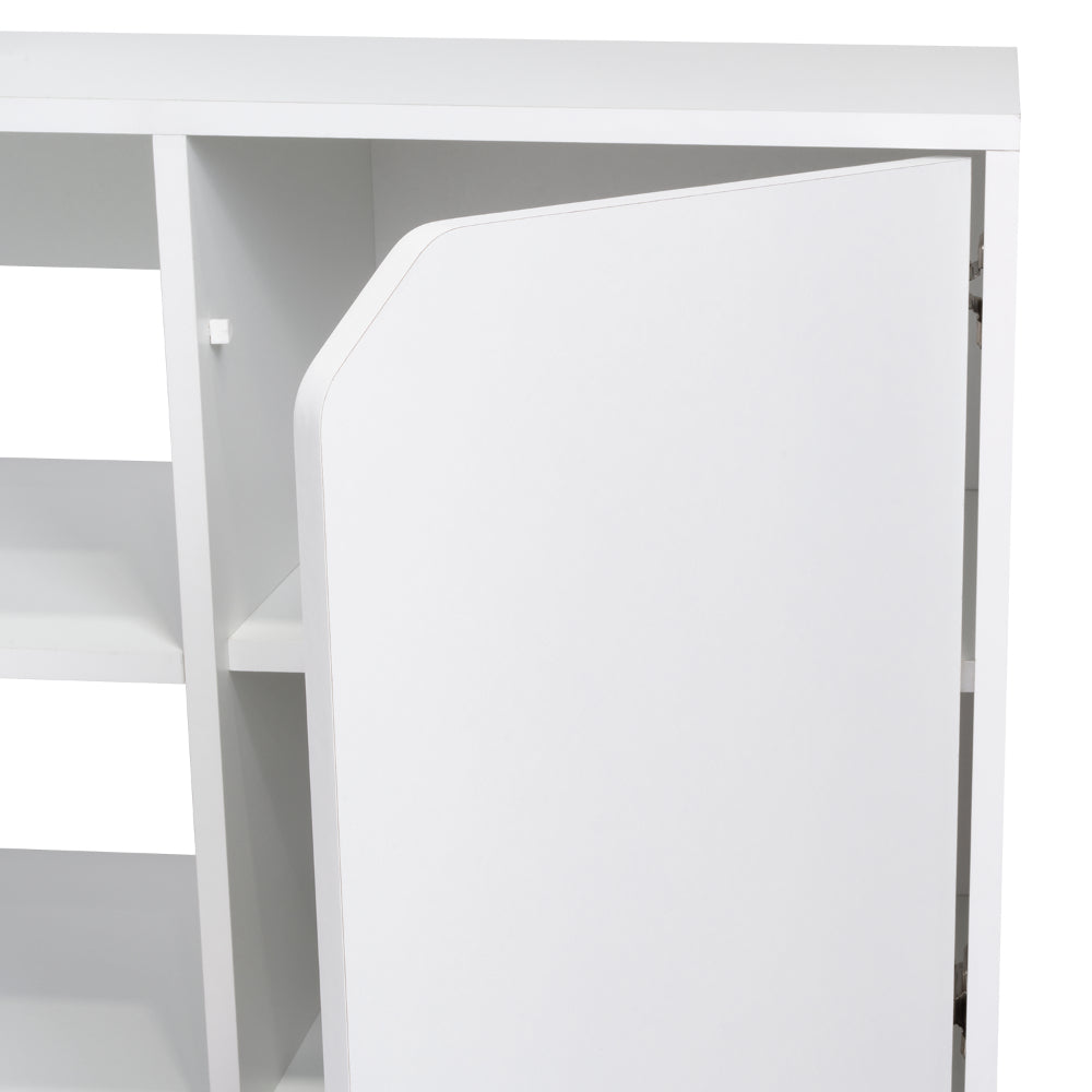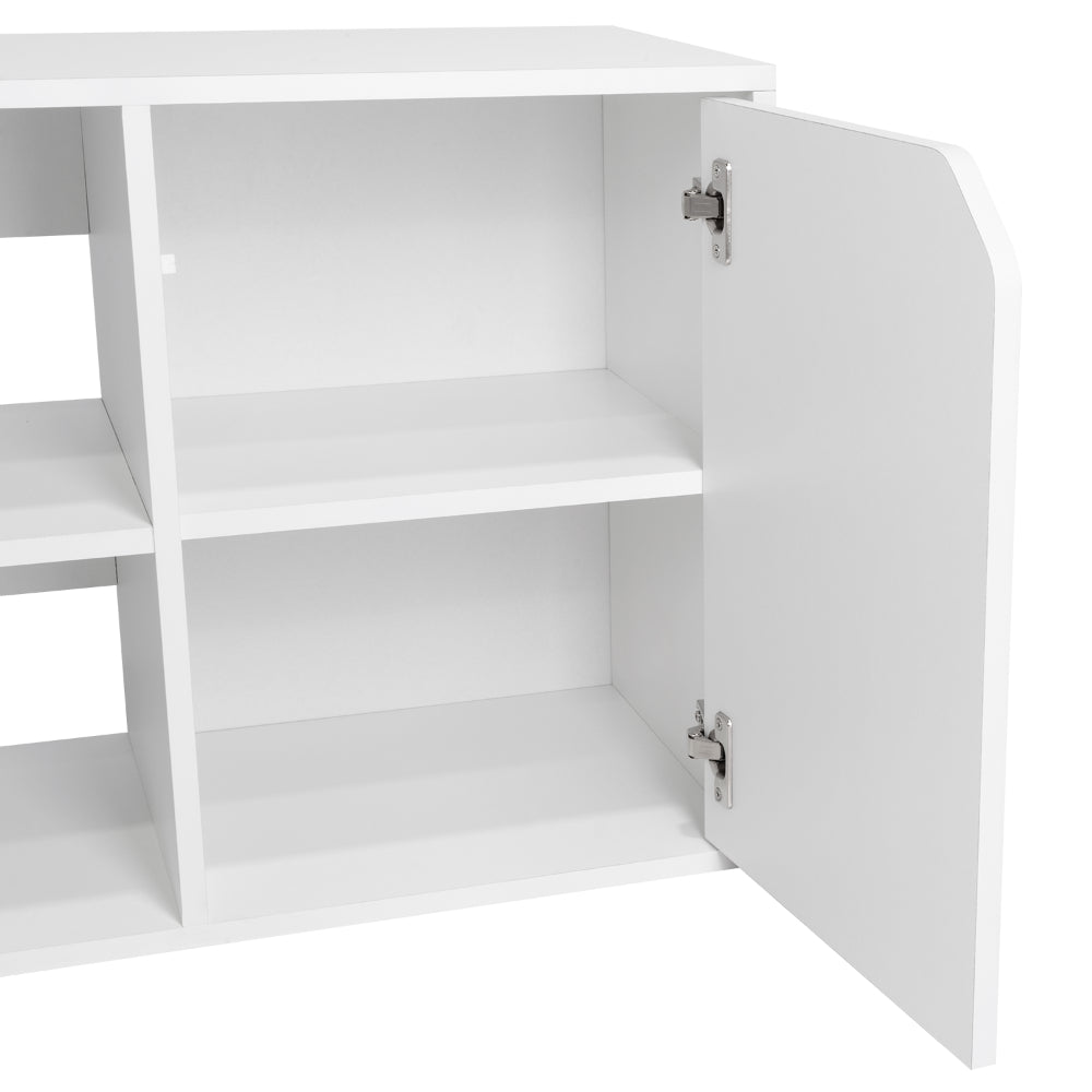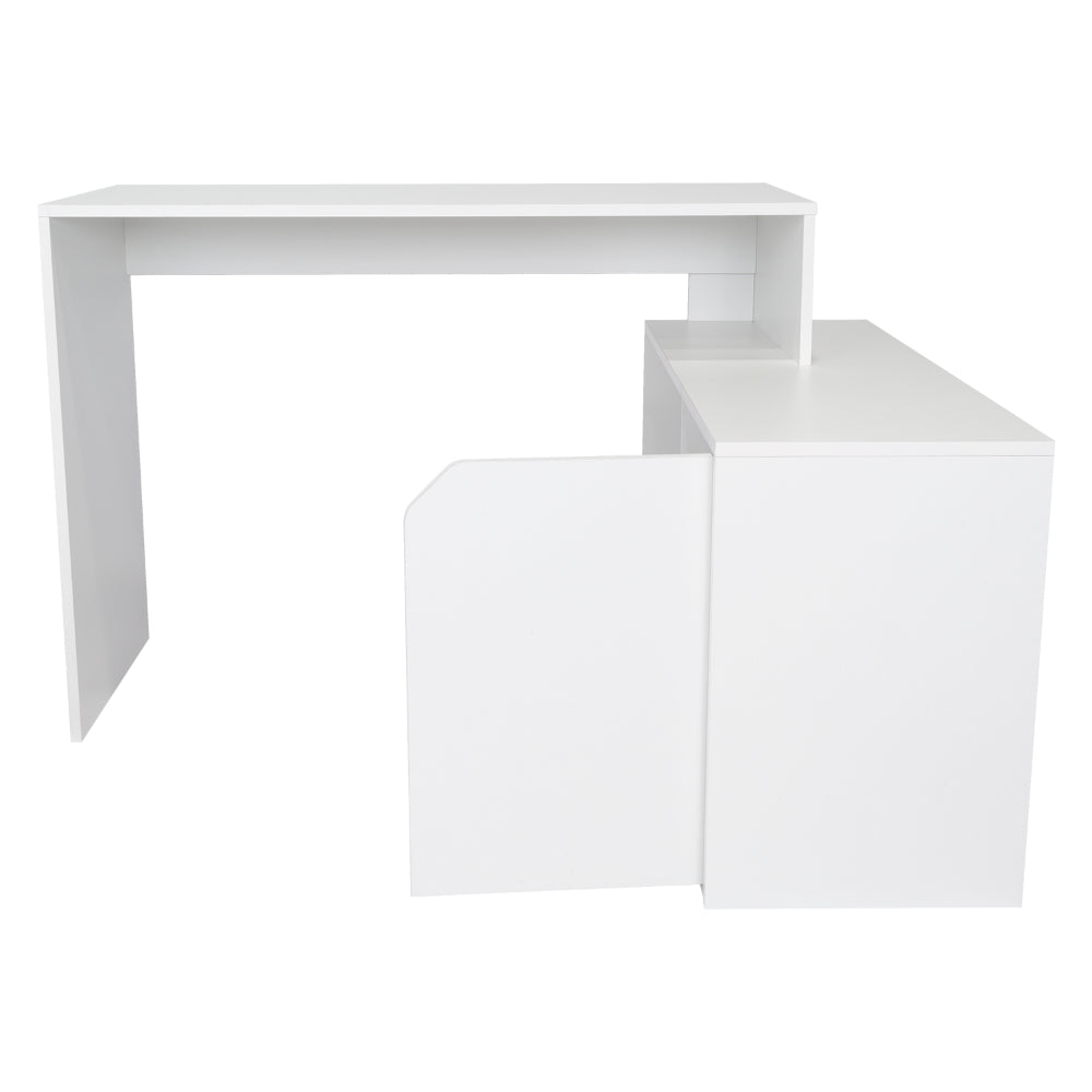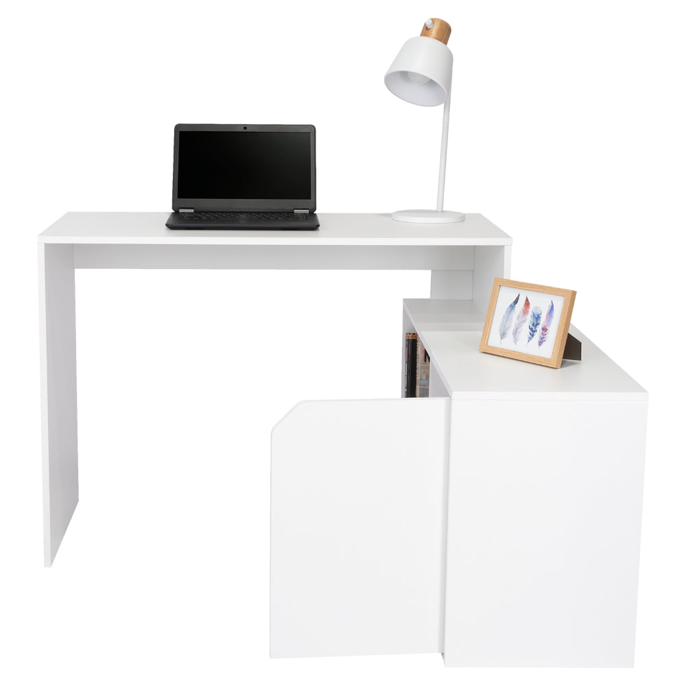 Escritorio En L Wuhan, Blanco, con Múltiples Entrepaños Para Ubicar Objetos y Una Puerta Abatible Cop