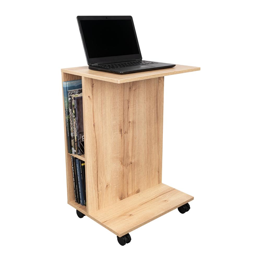 Escritorio Portable, con espacio para computadora portátil, rodachinas con freno y espacio para colocar libros y objetos decorativos.