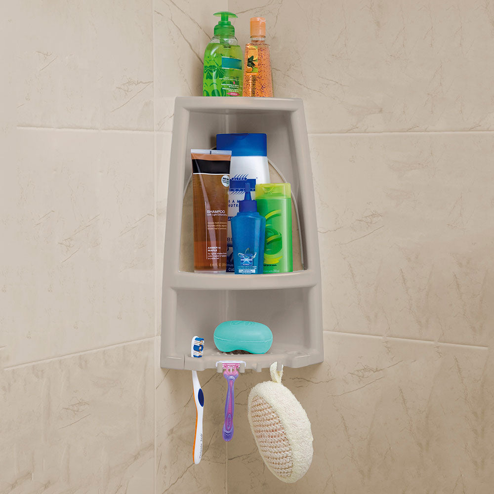 Práctico mueble esquinero ideal para optimizar el espacio en el baño y la ducha. Tiene 3 compartimentos, una jabonera con superficie antideslizantes y tres gancheras para todos los artículos necesarios. No se oxida, es resistente a la humedad. Tiene aditivo antimicrobial que previene la formación de hongos y bacterias. Resistencia hasta 6 kg de peso.