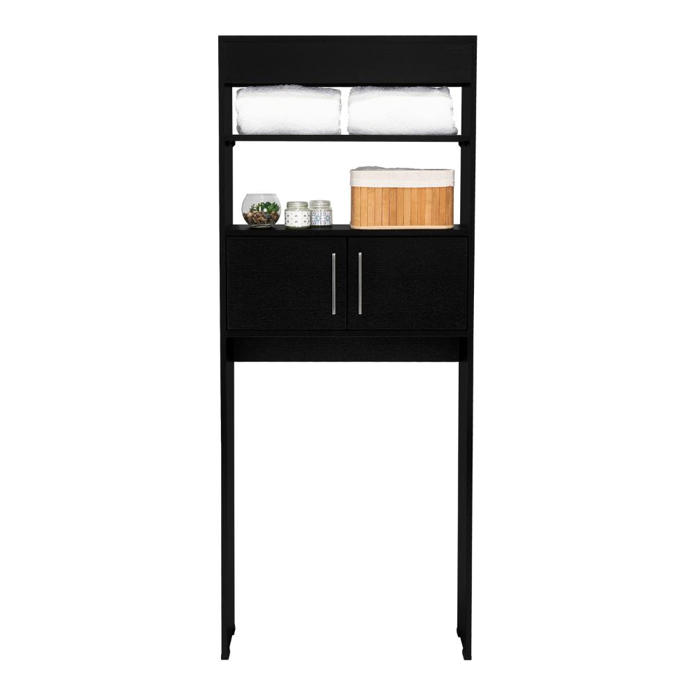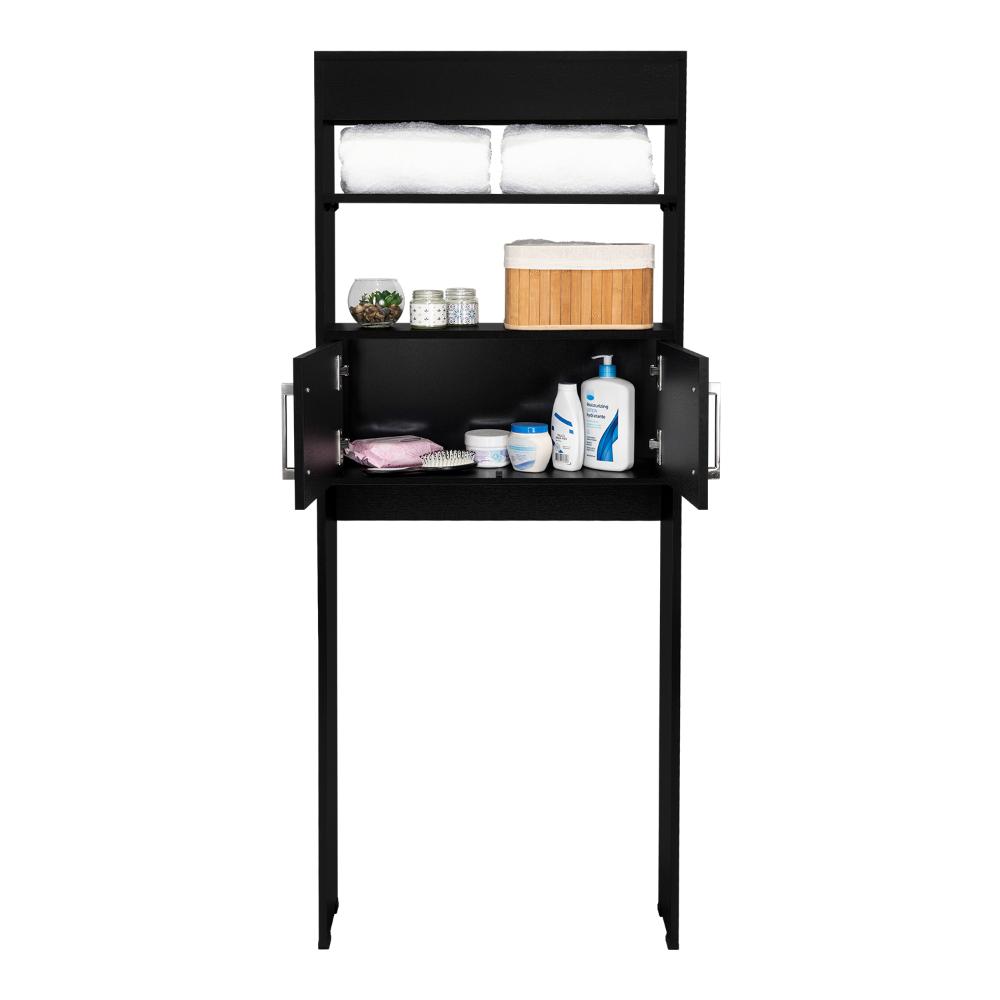 Gabinete de Baño, con dos puertas, tres entrepaños para ubicar múltiples objetos y manijas metálicas.