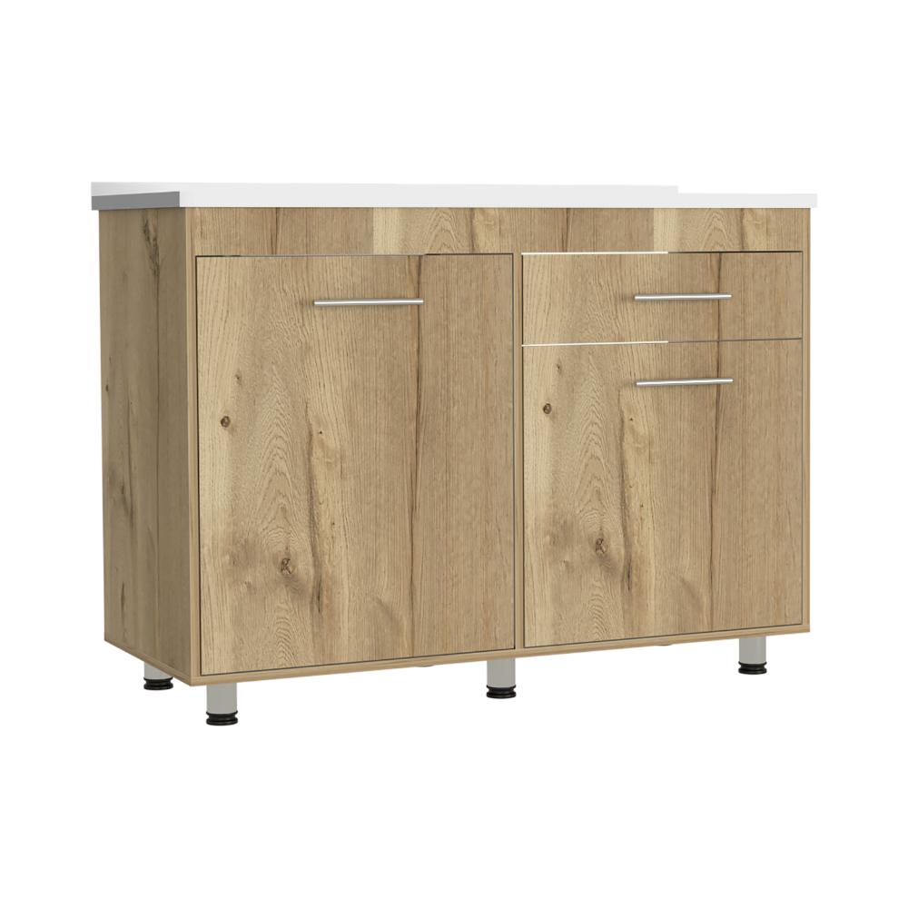Gabinete Inferior Petra, Blanco y Café Claro, incluye Mesón Izquierdo