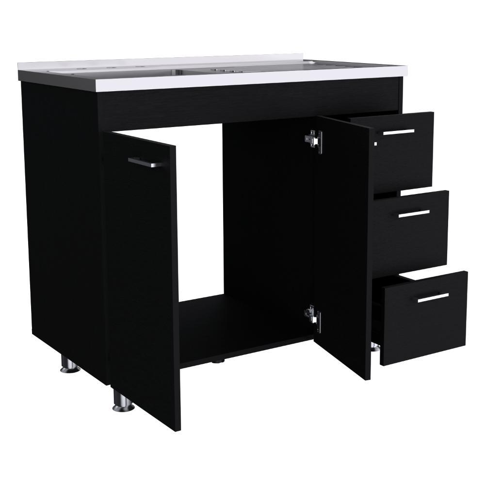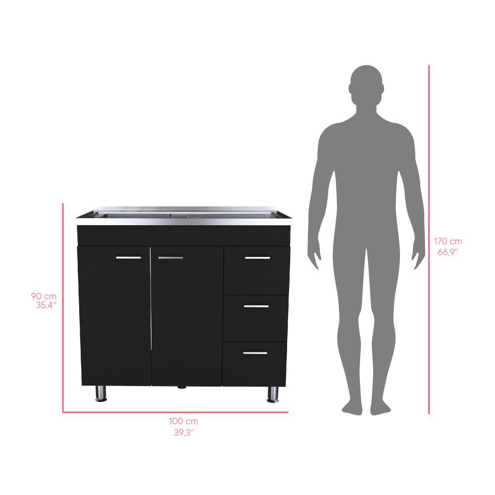 Gabinete Inferior Stella, Wengue, con Dos Puertas Batientes y Tres Cajones Deslizables, con Mesón Izquierdo