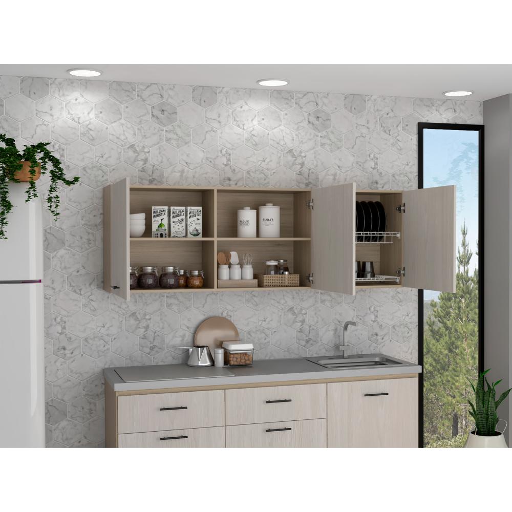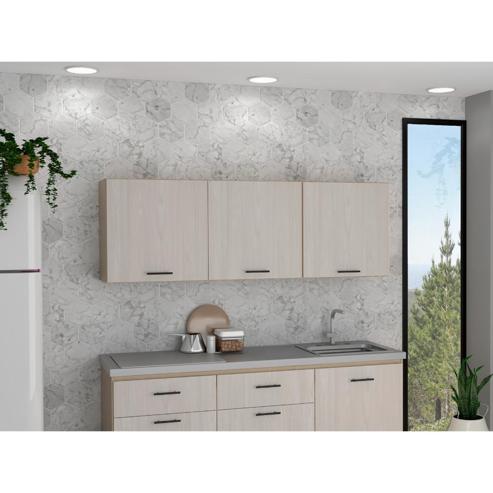 Gabinete Superior Kazan 180, Beige y Nevado, sirve para meson derecho o izquierdo, tres puertas abatibles