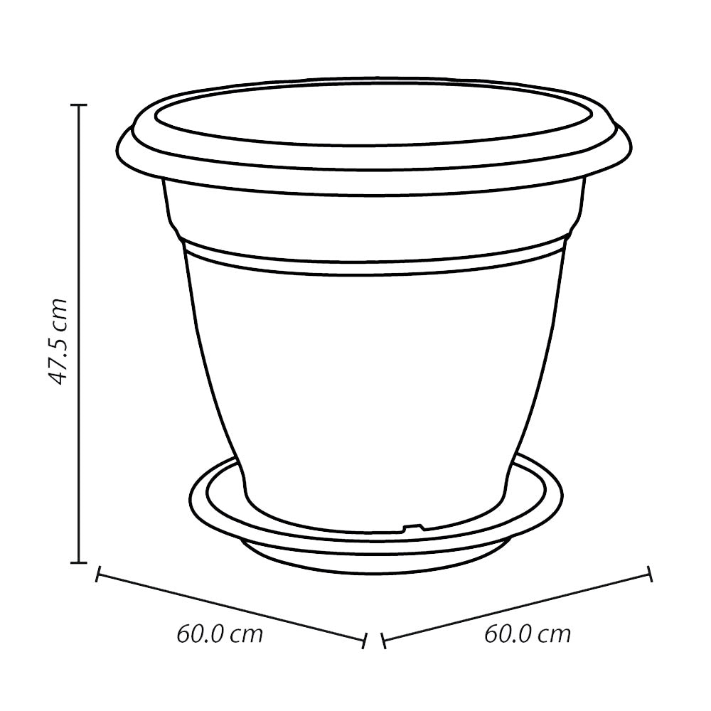 Matera Redonda de 60cm con plato. Es plástica y tiene aditivo de protector UV para mayor duración y resistencia al sol.
