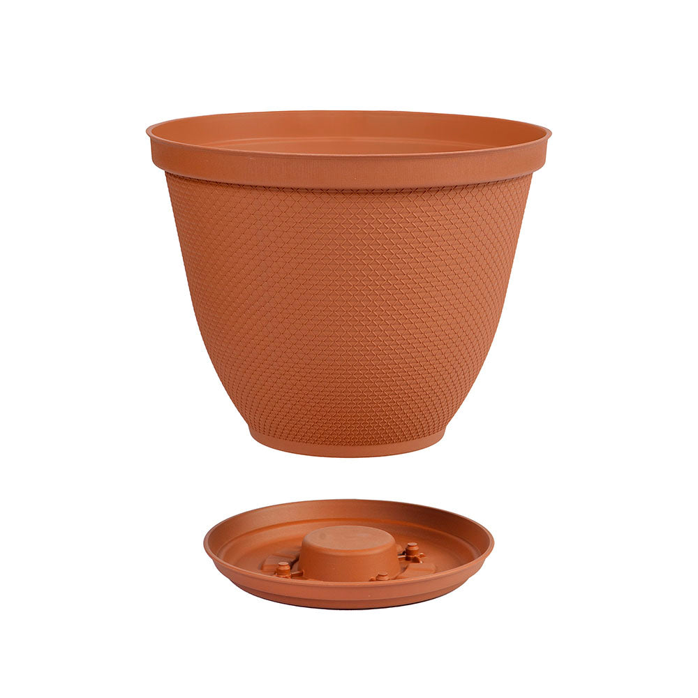 La Matera Redonda Rafia 30 cm con Plato es ideal para resaltar tus plantas con un estilo natural y elegante. Fabricada con materiales duraderos y diseñada para imitar la textura de la rafia, esta matera aporta un toque estético a cualquier ambiente. Incluye un plato a juego que ayuda a evitar derrames, manteniendo tus superficies limpias. Perfecta para uso en interiores y exteriores.