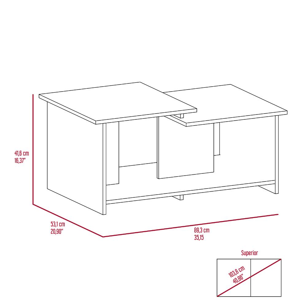 Mesa de Centro, múltiples entrepaños y superficies para ubicar objetos.