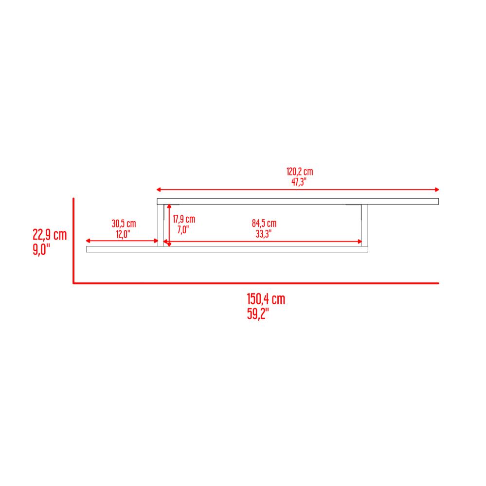 Mesa de TV Flotante, con superficie para objetos decorativos, equipos de audio y video.
