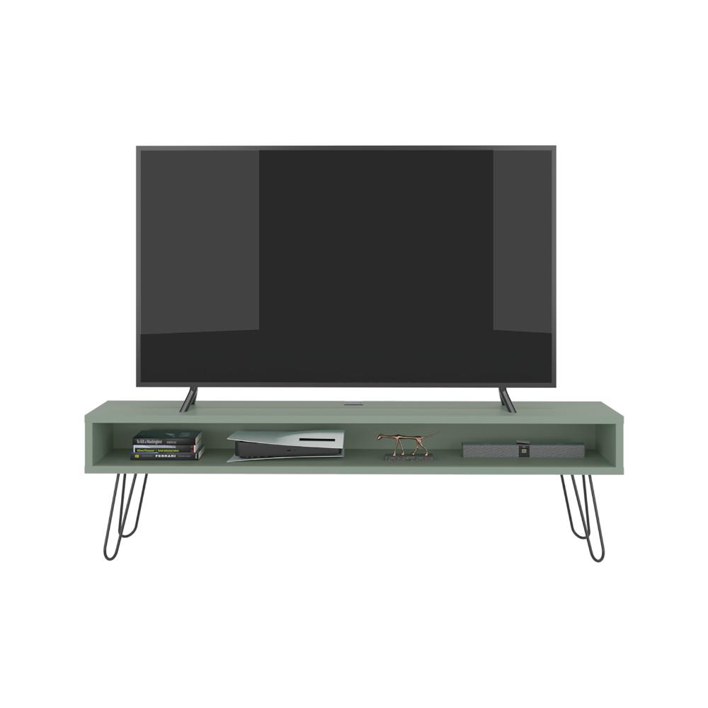 Mesa Para Tv Ralf, Agave, con patas metálicas y espacio de tv hasta 70 pulgadas