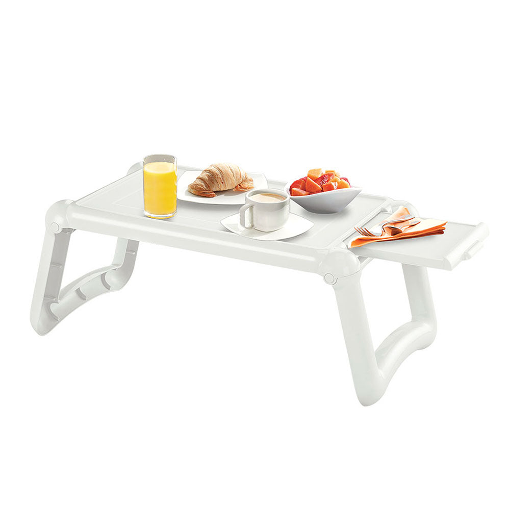 La mesa personal portátil es la opción que facilita el uso de dispositivos móviles en las habitaciones para tomar el desayuno y estudiar. Al utilizar la mesa personal portátil aísla el calor generado por los aparatos electrónicos, proporciona una mejor postura al escribir y leer, brindando comodidad y seguridad. Liviana y fuerte ya que se pliega y se guarda, es ligera, tiene una bandeja adicional para ampliar la superficie de la mesa, tiene topes de seguridad en las patas para brindar estabilidad.