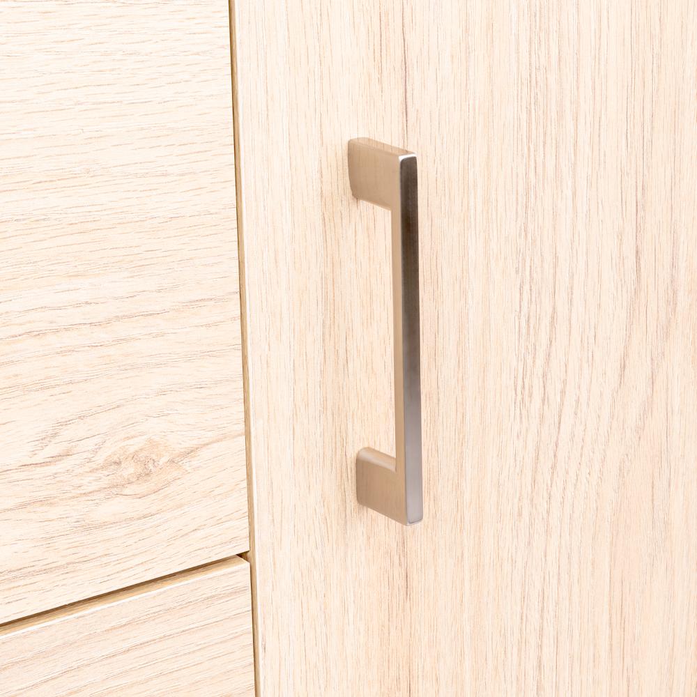 Elaborado en Madera aglomerada MDP, recubierta con láminas melamínicas de excelente calidad, en color Beige y Blanco.