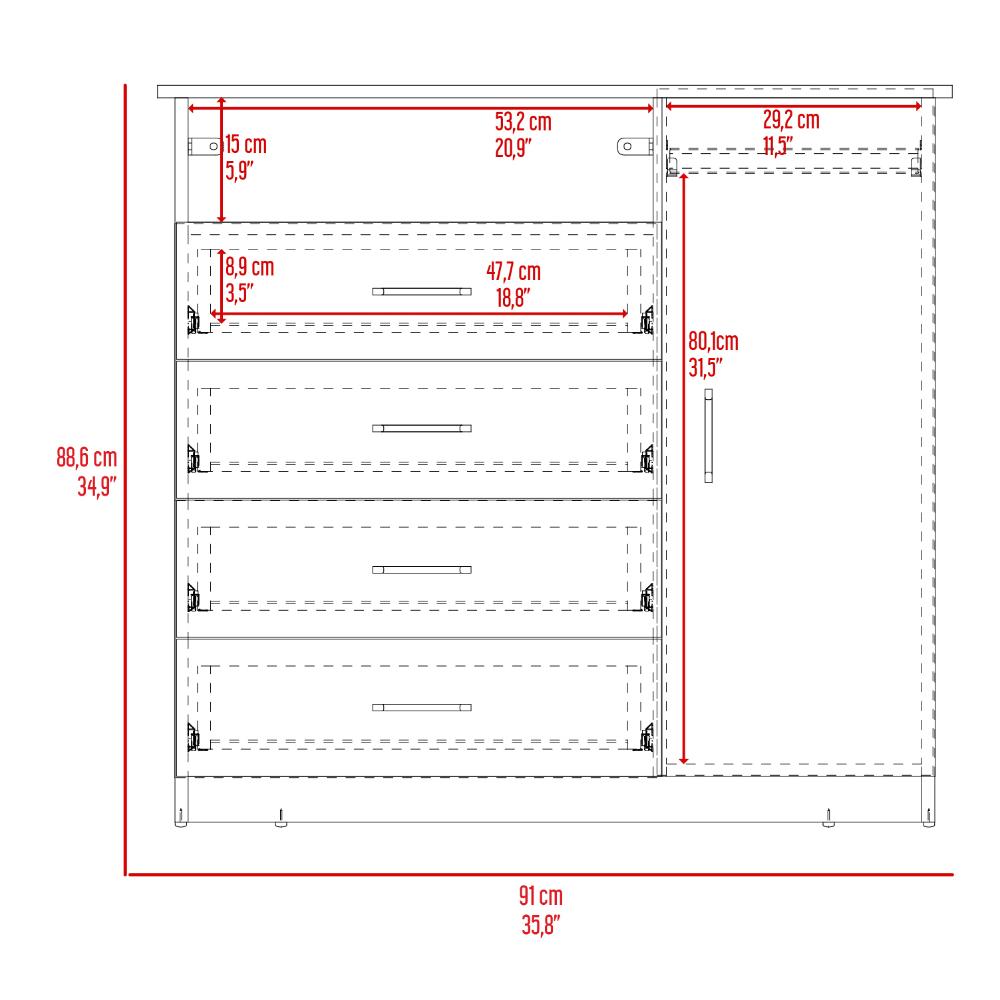 Organizador Barlovento, Beige y Blanco con Cuatro Cajones y una puerta