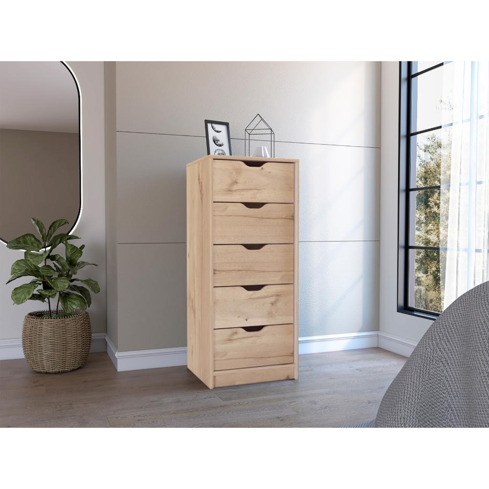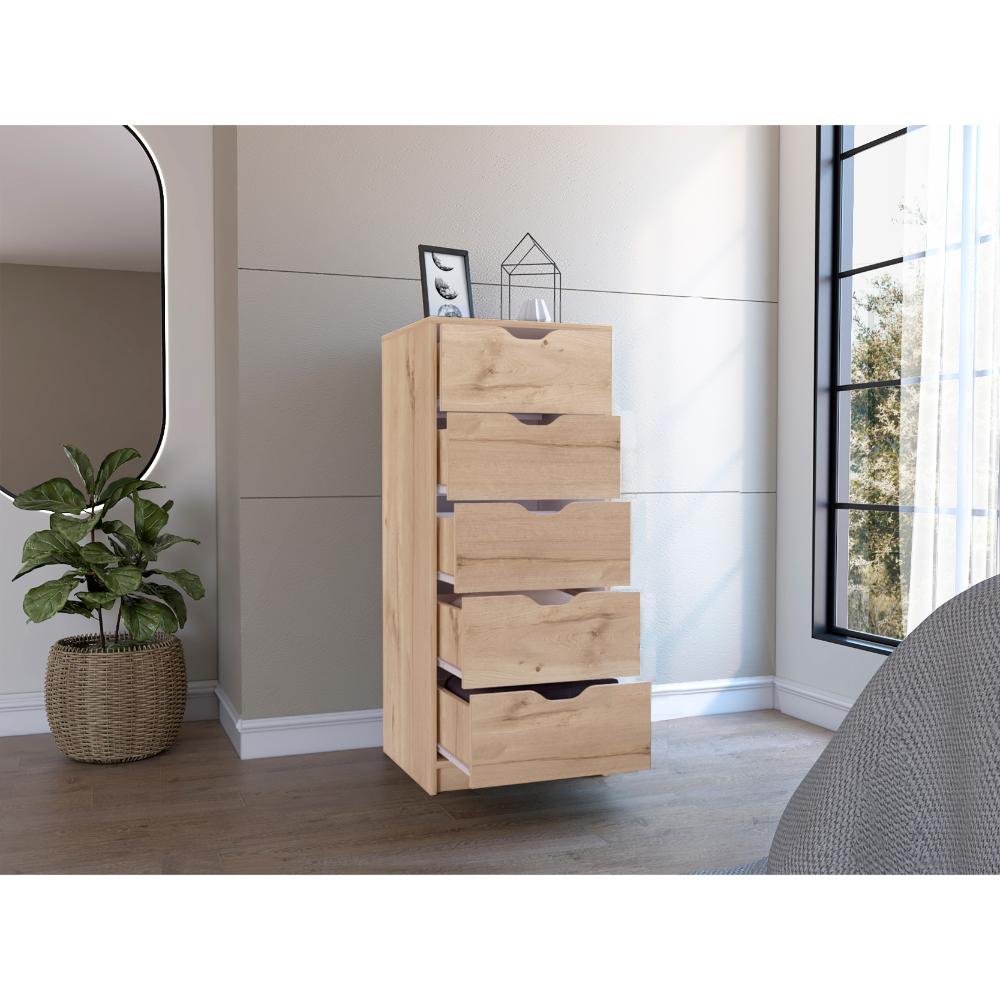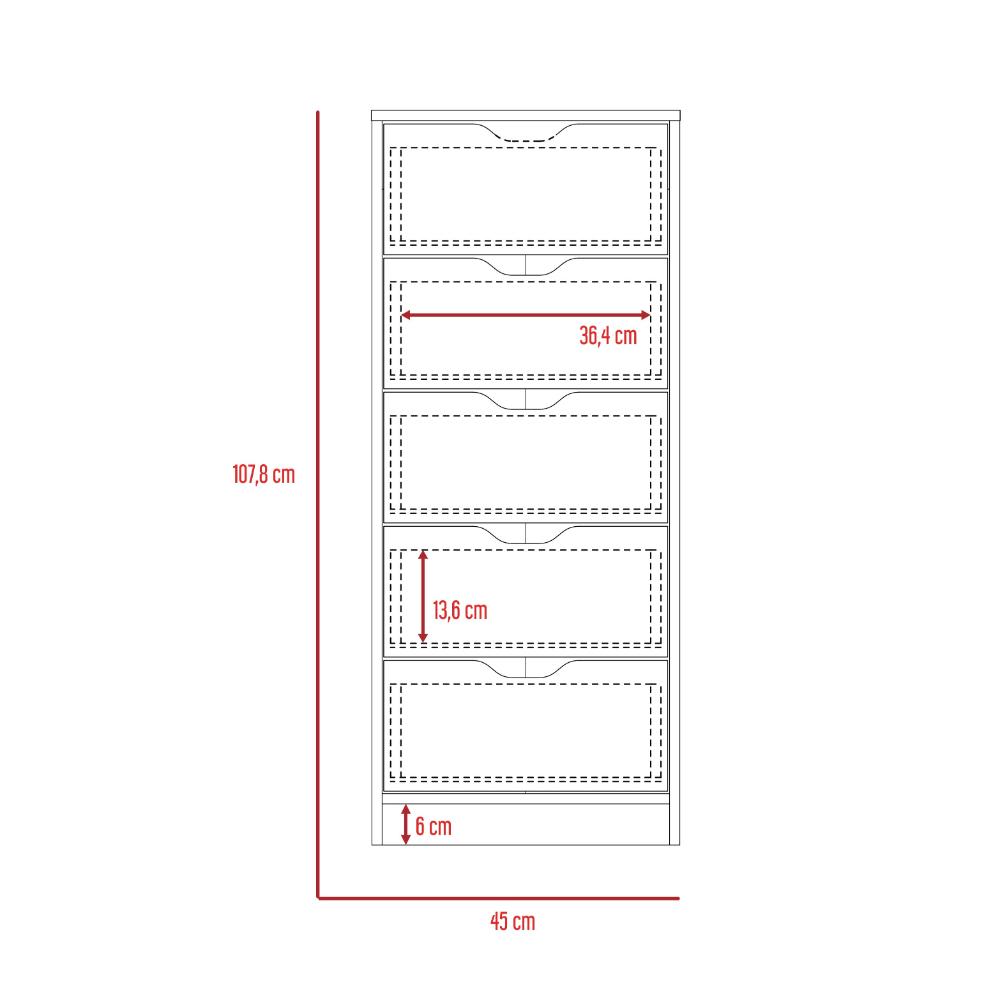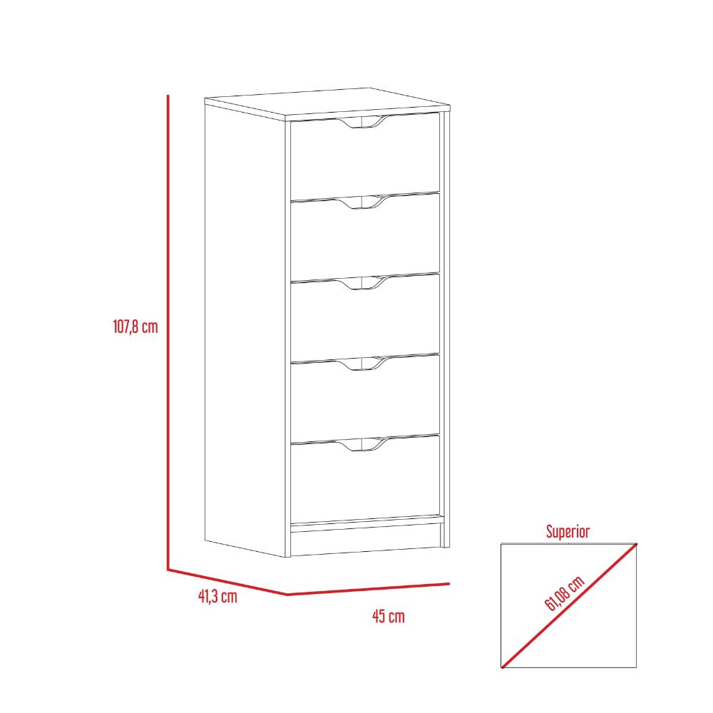 Organizador Brasilia, Café Claro y Blanco Duqueza, con cinco cajones multiusos deslizables.