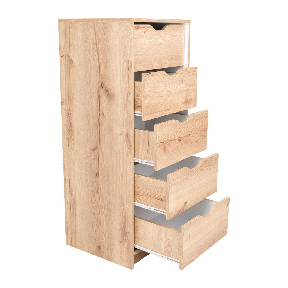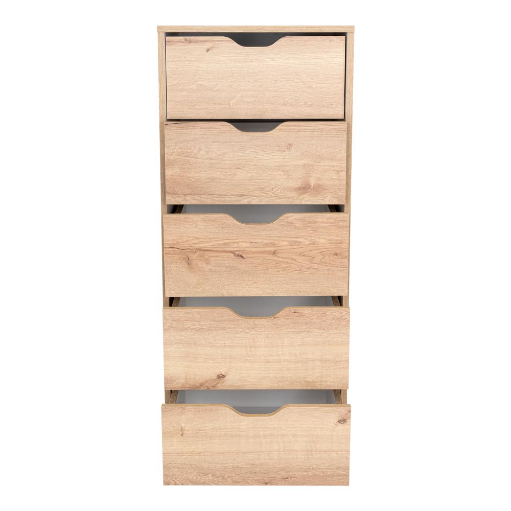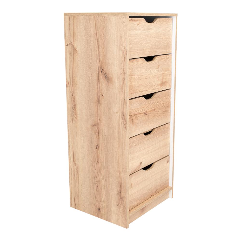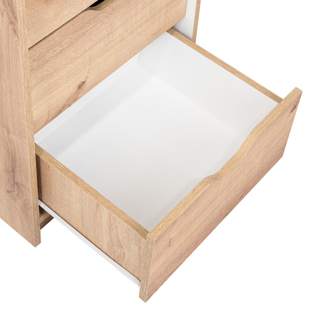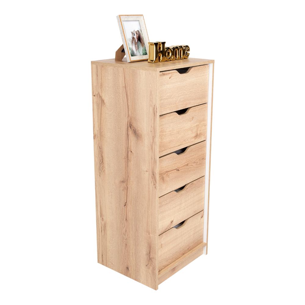 Organizador Brasilia, Café Claro y Blanco Duqueza, con cinco cajones multiusos deslizables.