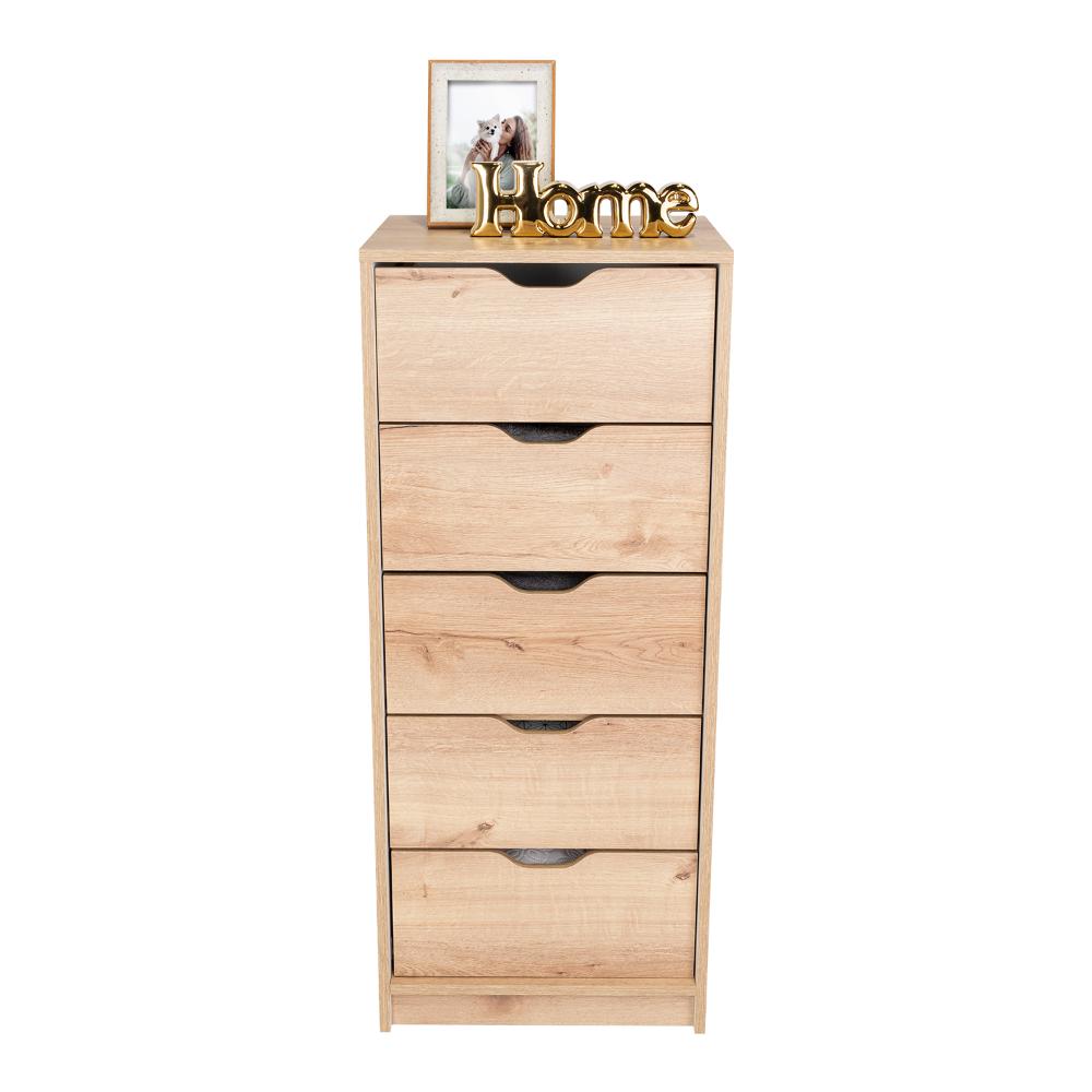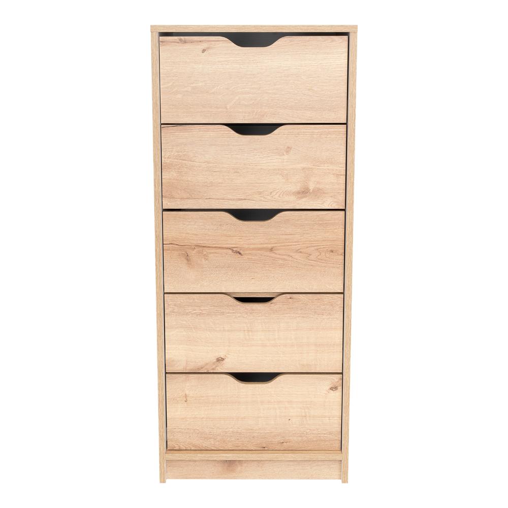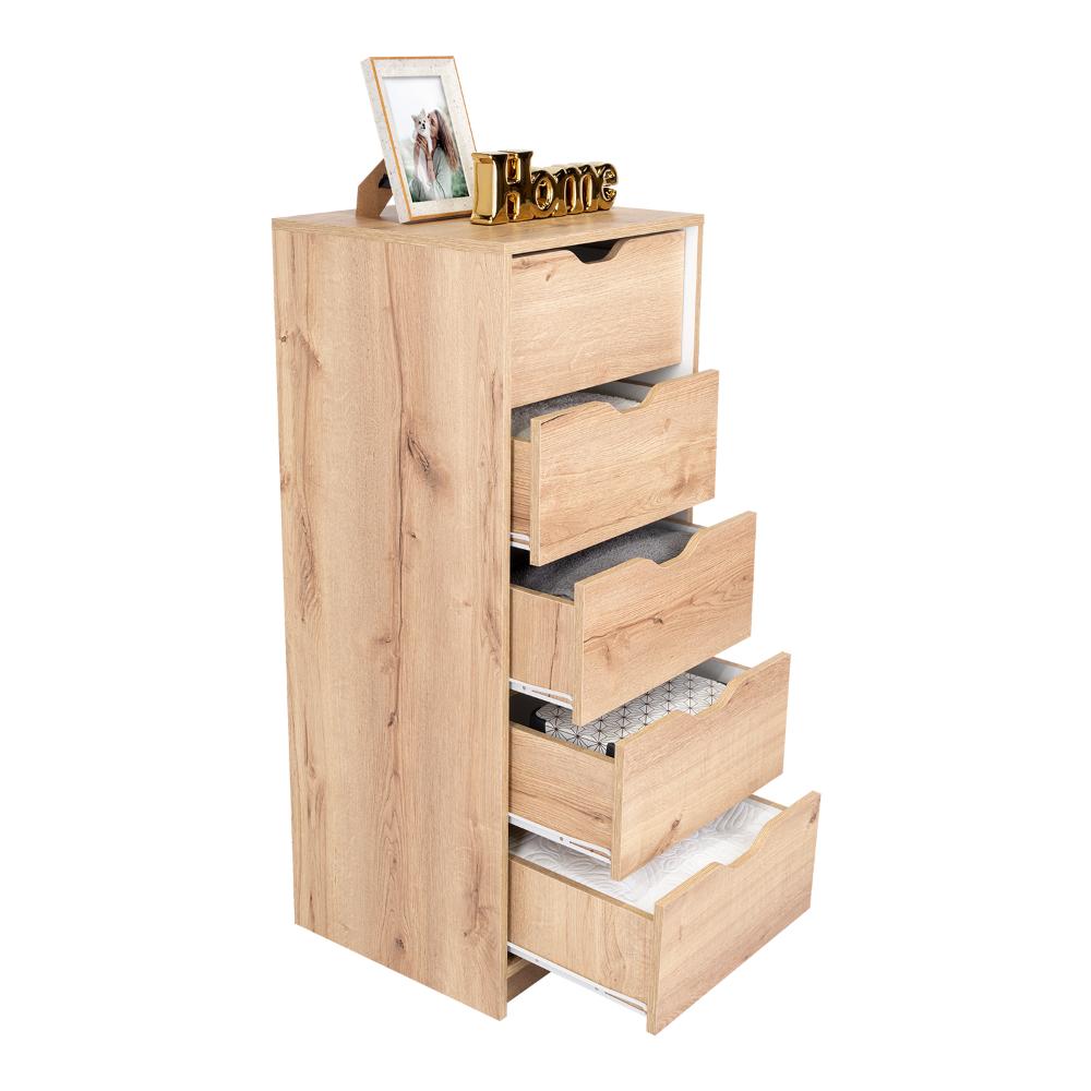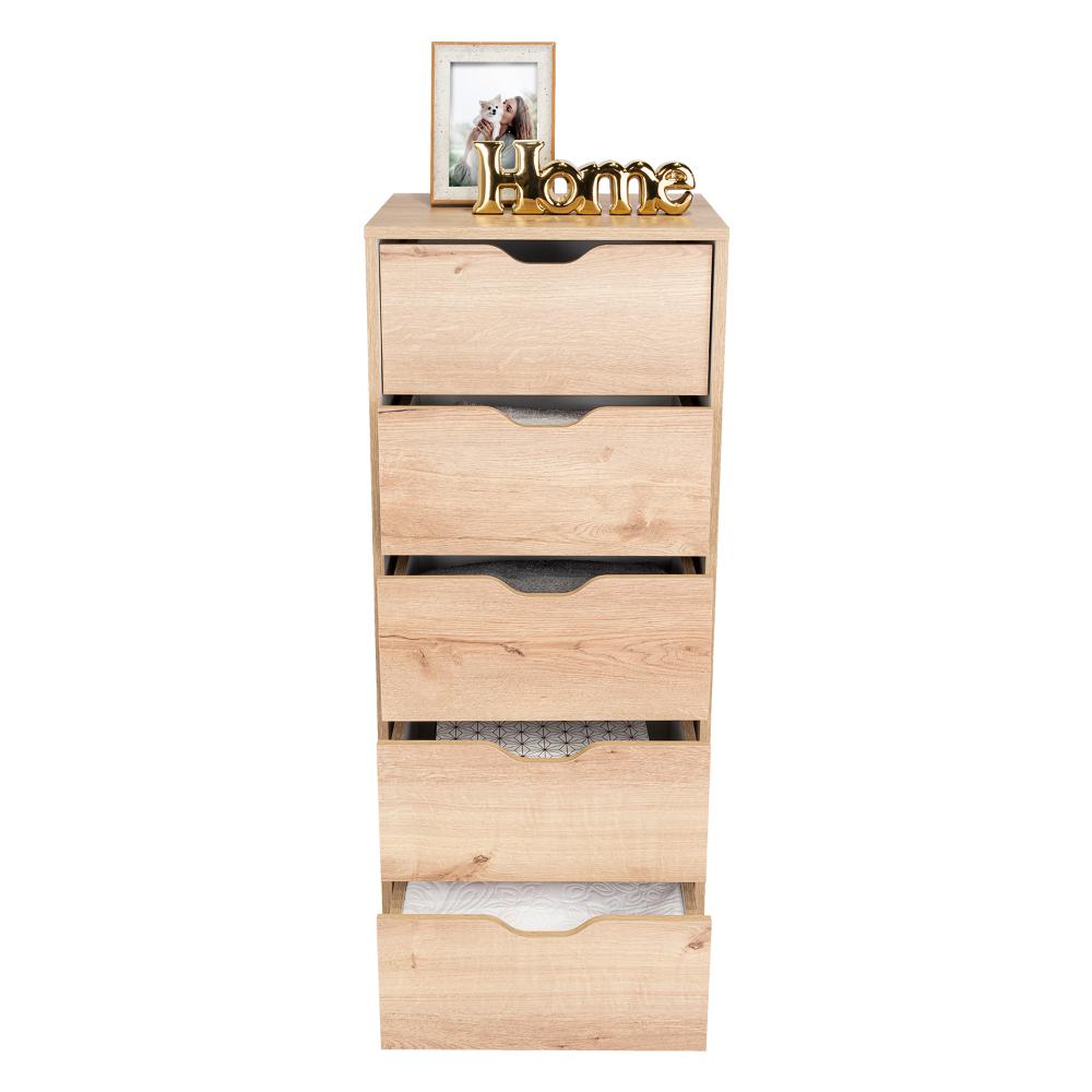 Organizador Brasilia, Café Claro y Blanco Duqueza, con cinco cajones multiusos deslizables.