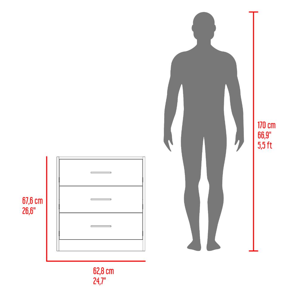 Organizador, con tres amplios cajones deslizables para guardar objetos personales, espacio superior para objetos decorativos y diseño moderno.