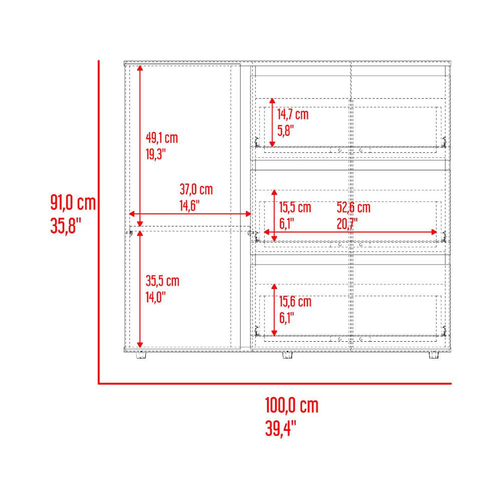 Organizador, con espacio para objetos decorativos, combinación de colores, tres cajones con gran capacidad de almacenamiento, 1 puerta abatible, es de facil instalación.