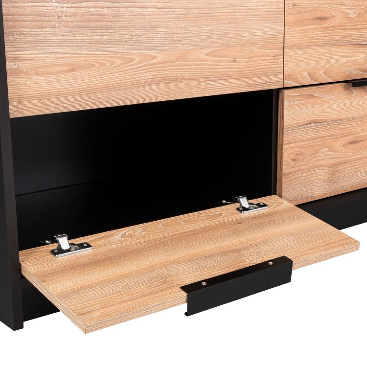 Elaborado en Madera aglomerada MDP, recubierta con láminas melamínicas de excelente calidad, en color Wengue y Miel.