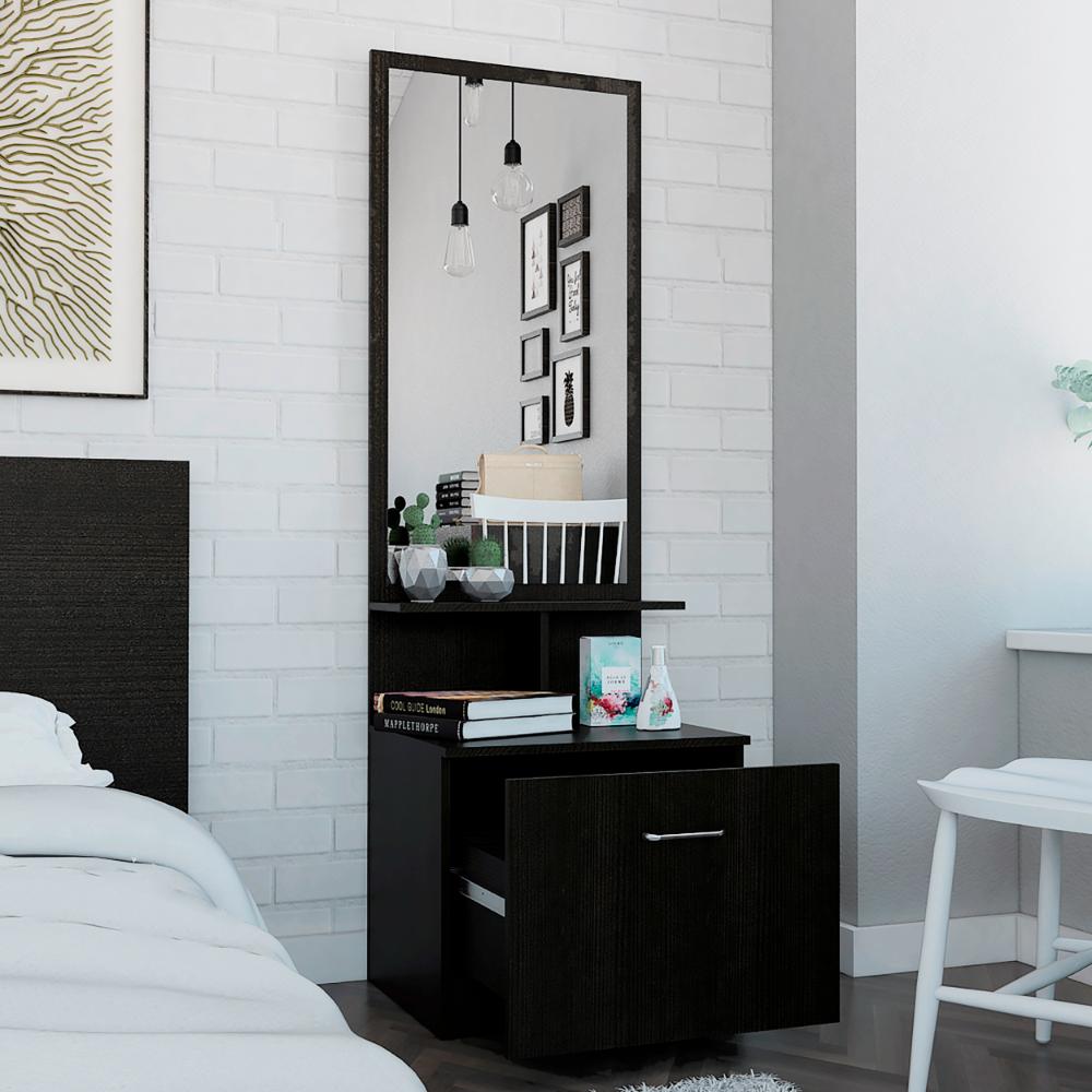 Tocador Zaha, Wengue, con Espejo y Un Cajón Organizador